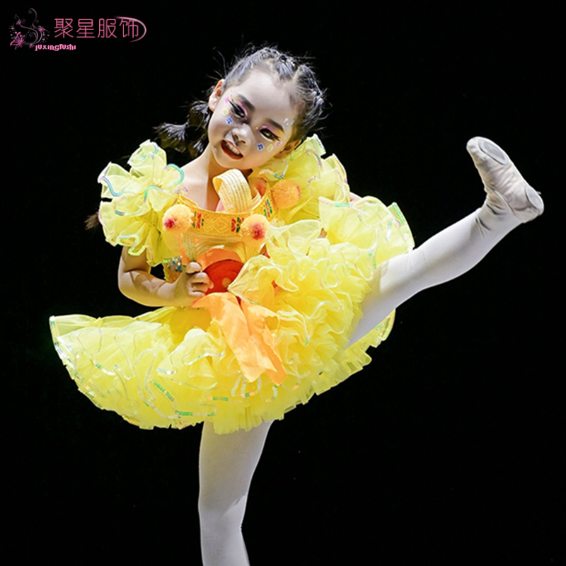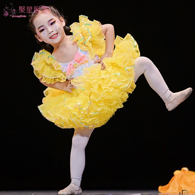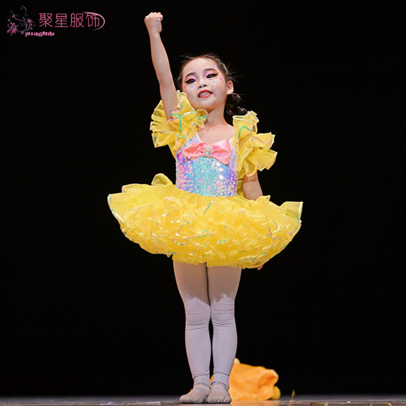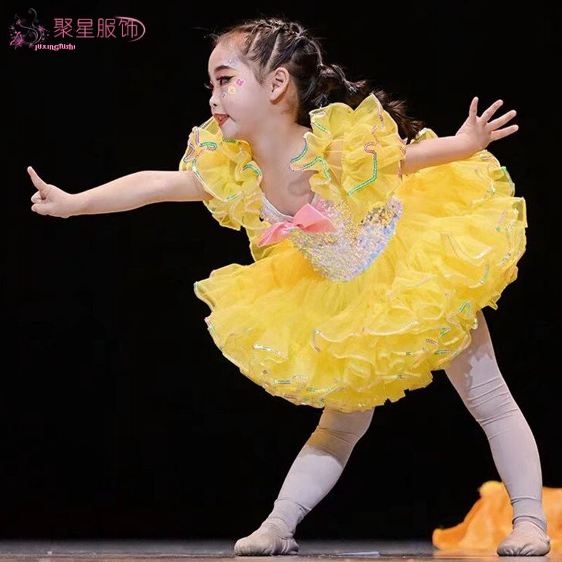 六一幼儿舞蹈可爱亮片公主裙快乐的小星星黄色蓬蓬蛋糕纱裙演出服