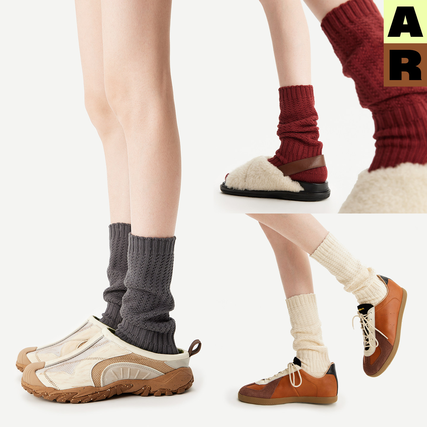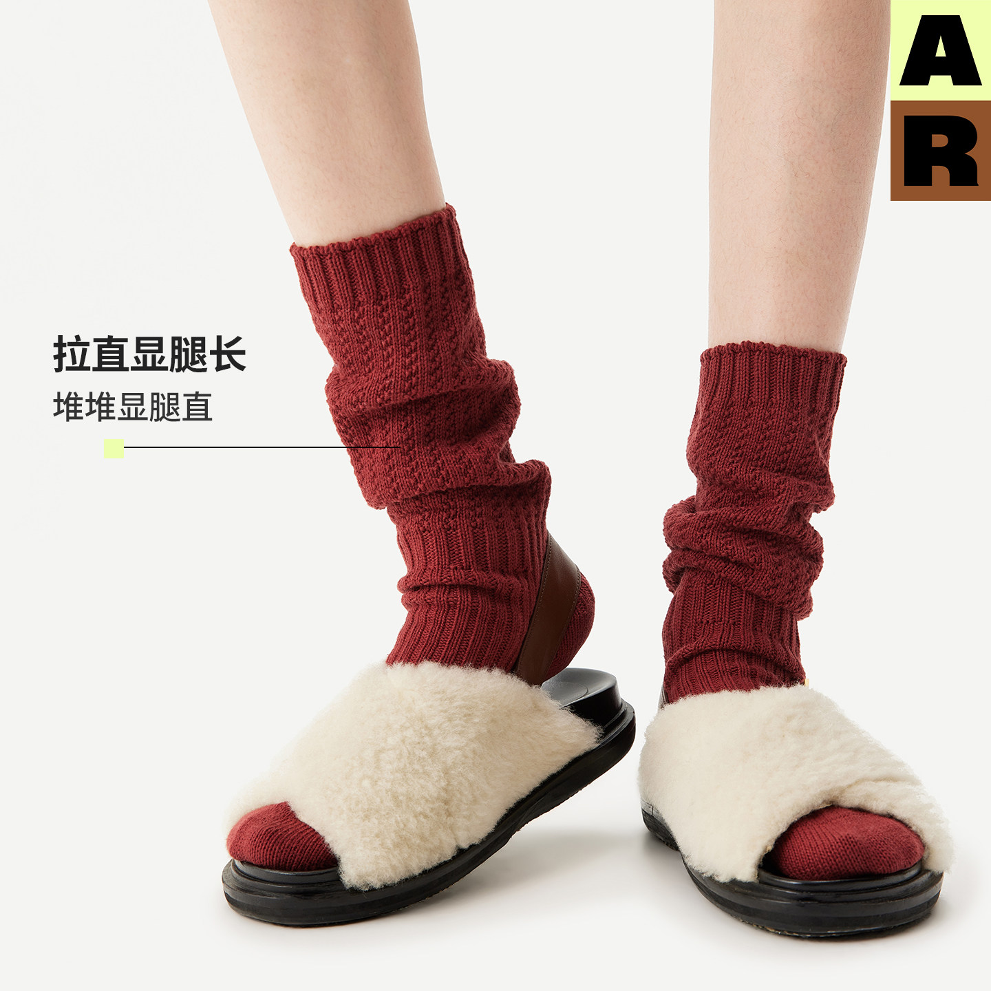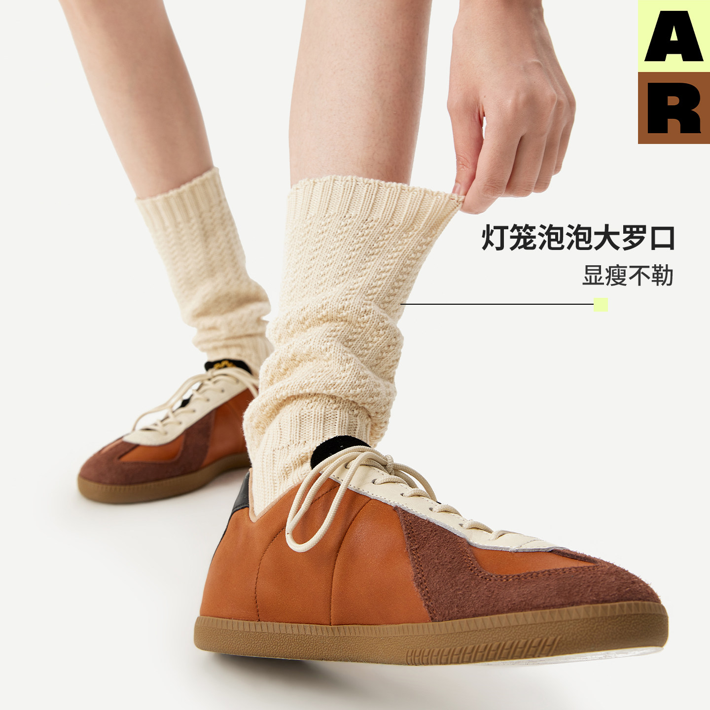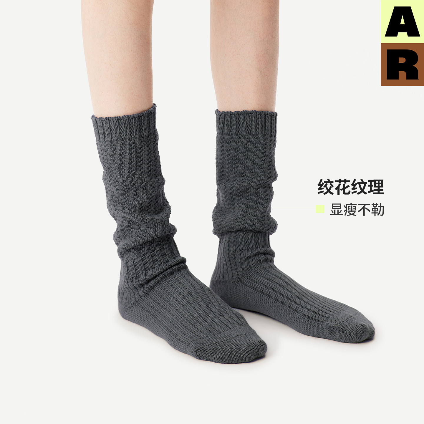 AR绞花灯笼堆堆袜2026新款纯色针织小腿袜显瘦美腿长筒无骨袜女秋