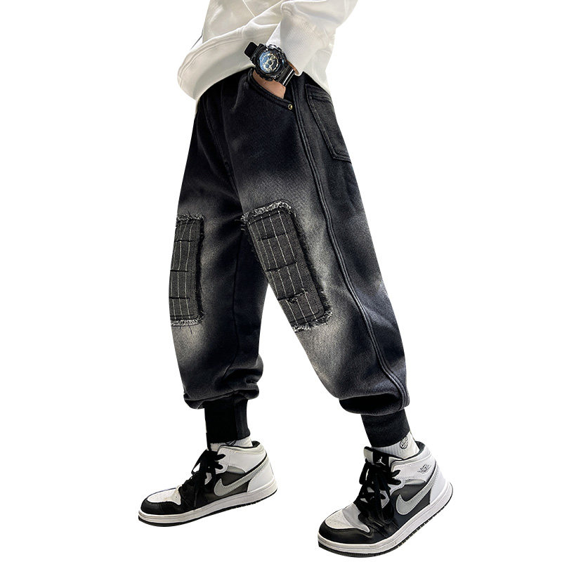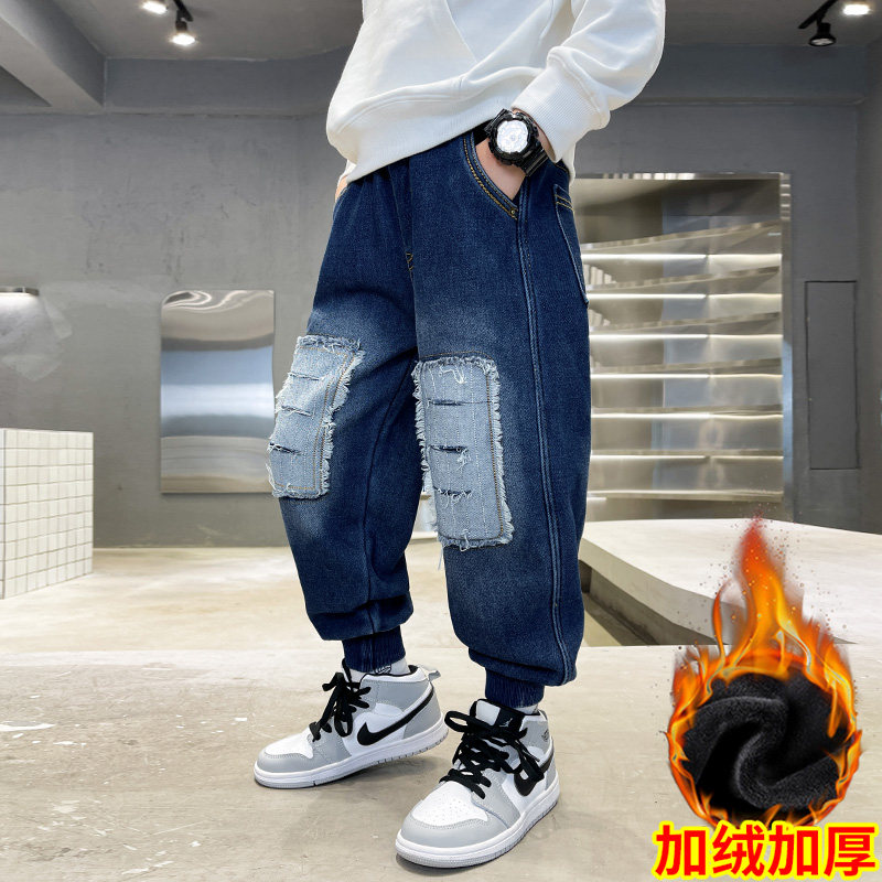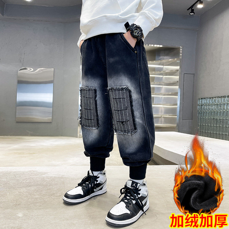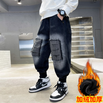 男童加绒裤子2025新款秋冬装儿童一体绒牛仔裤中大童男孩春秋长裤