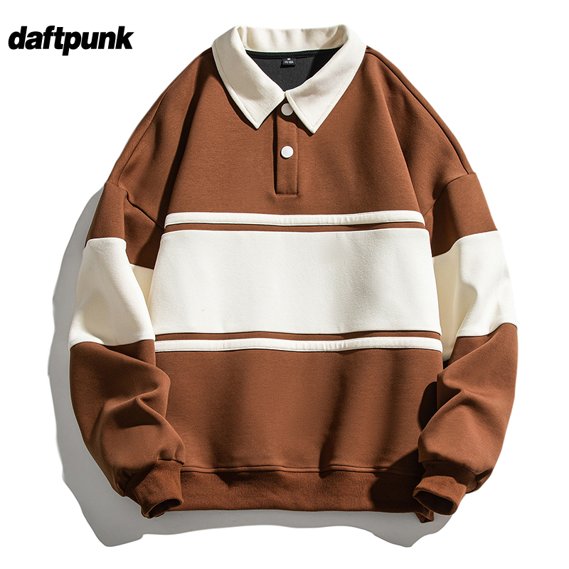 美式复古vintag卫衣男春秋季宽松polo衫情侣装翻领男女学生外套潮