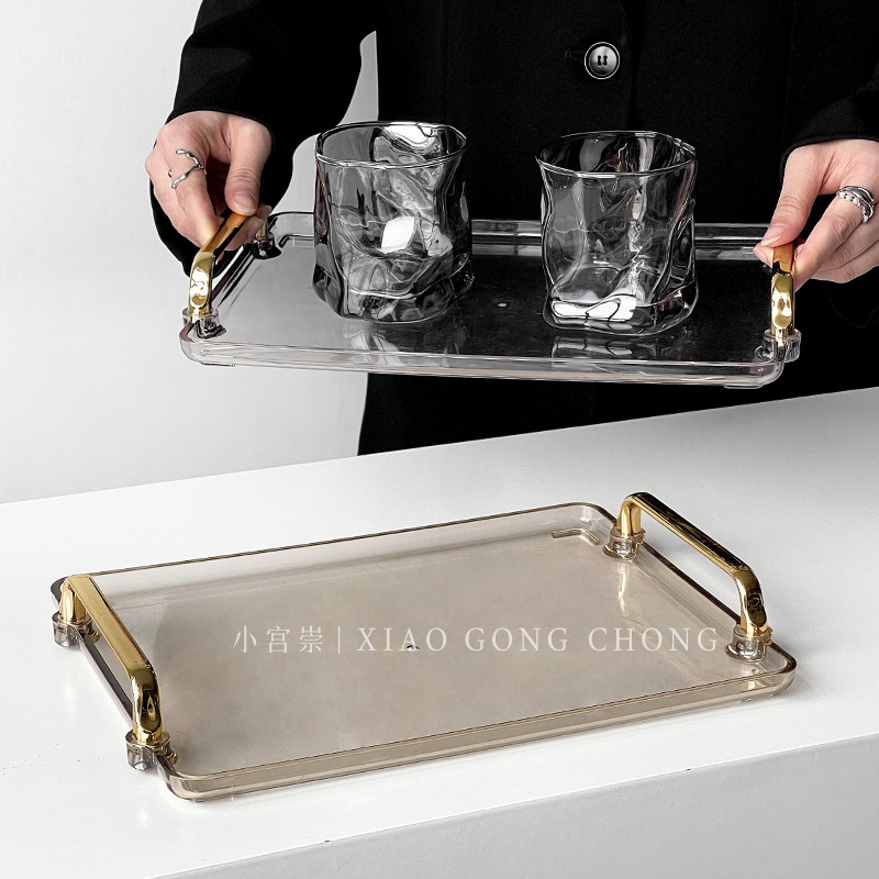 轻奢水杯托盘长方形家用放茶盘客厅塑料盘子水果盘杯子茶具收纳盘