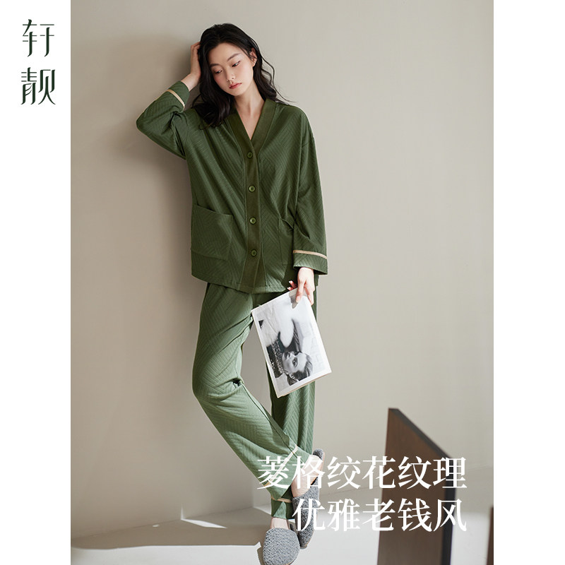 轩靓老钱风睡衣女春秋季纯棉长袖