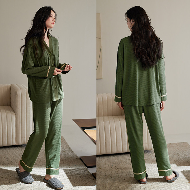 轩靓老钱风睡衣女春秋季纯棉长袖高级感可外穿休闲大码家居服套装