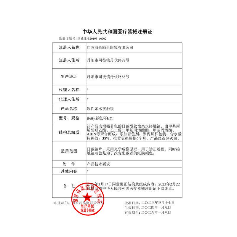 海俪恩美瞳半年抛1片彩色隐形近视眼镜大小直径国风df