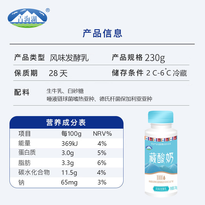 青海湖高原藏酸奶230g*8瓶1000亿鲜活菌低温原味酸奶青海特产牛奶