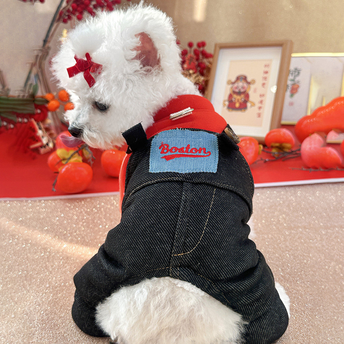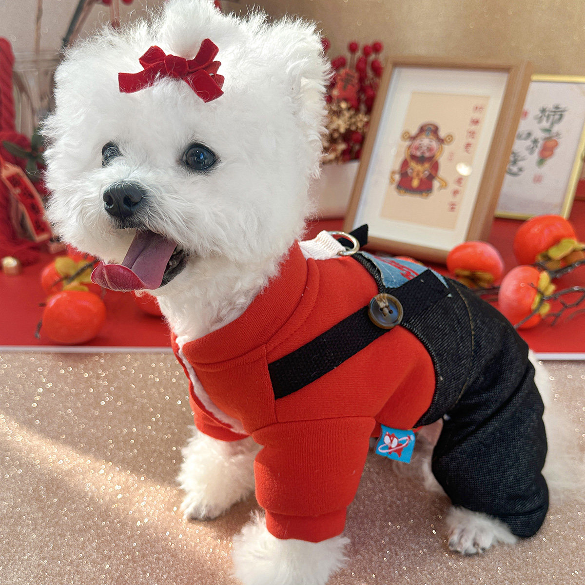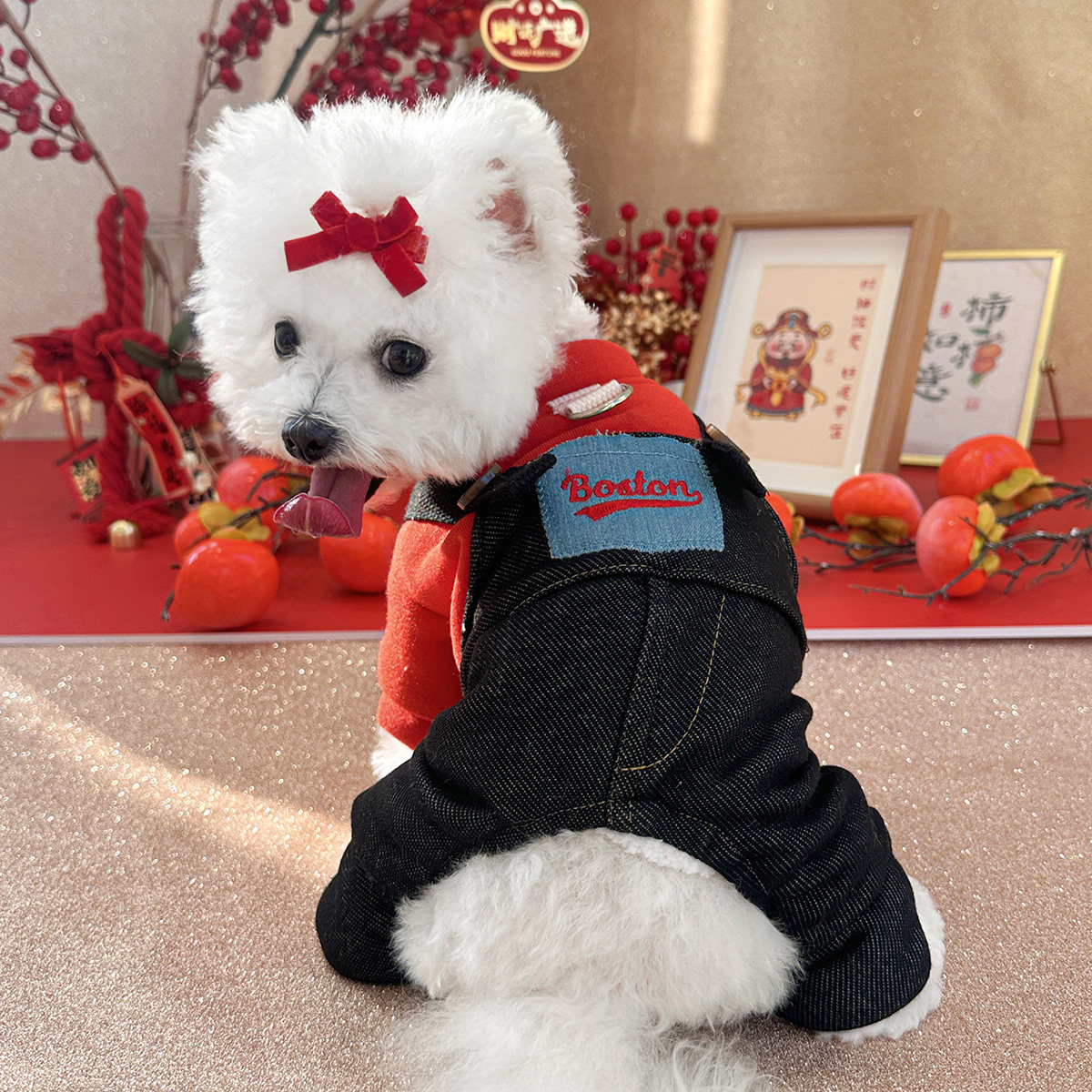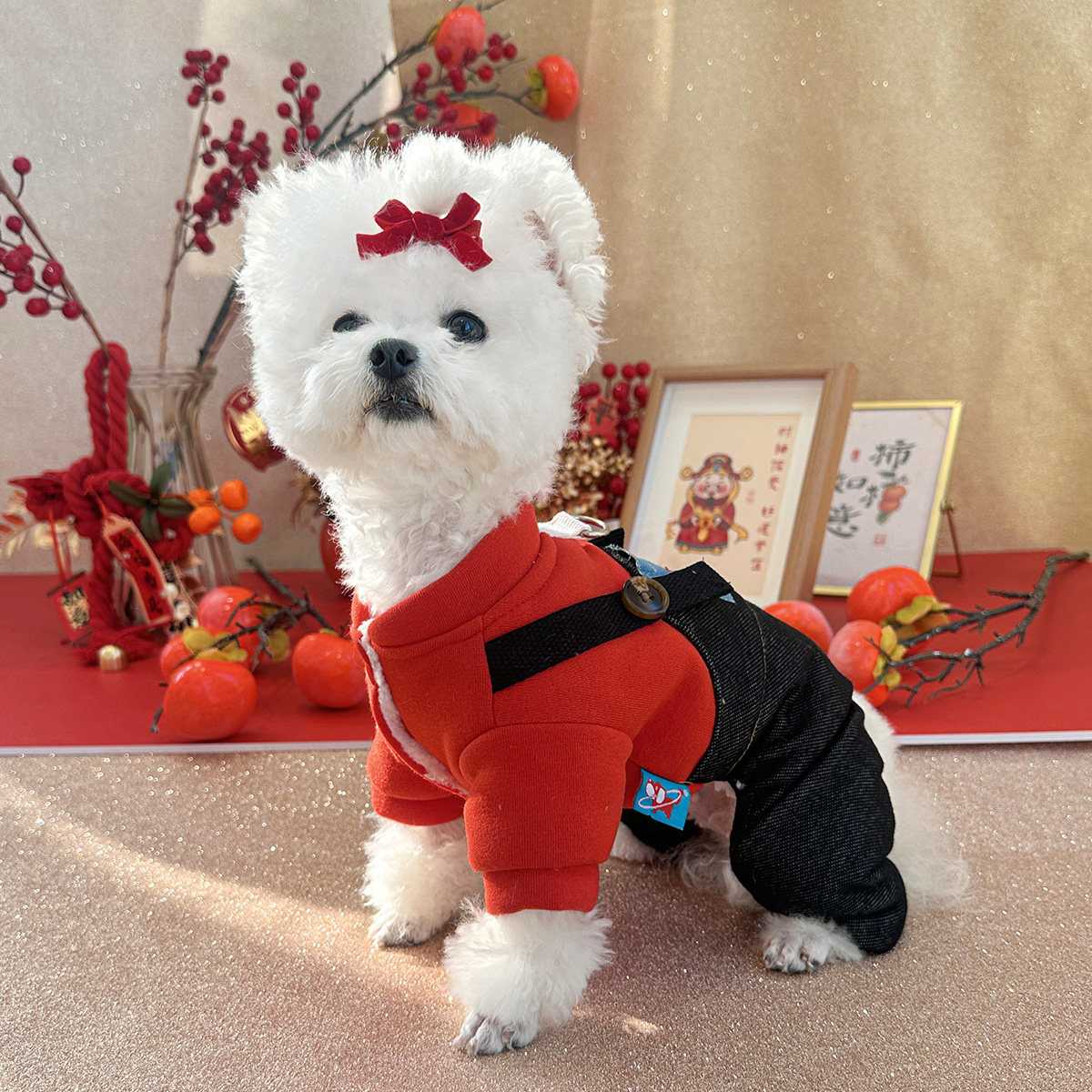 狗狗衣服冬季宠物加厚冬装棉衣小型犬新年四脚泰迪博美比熊红色猫