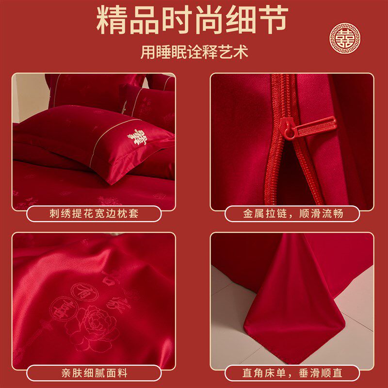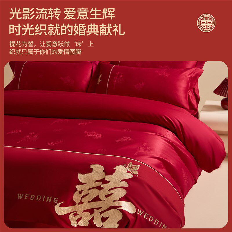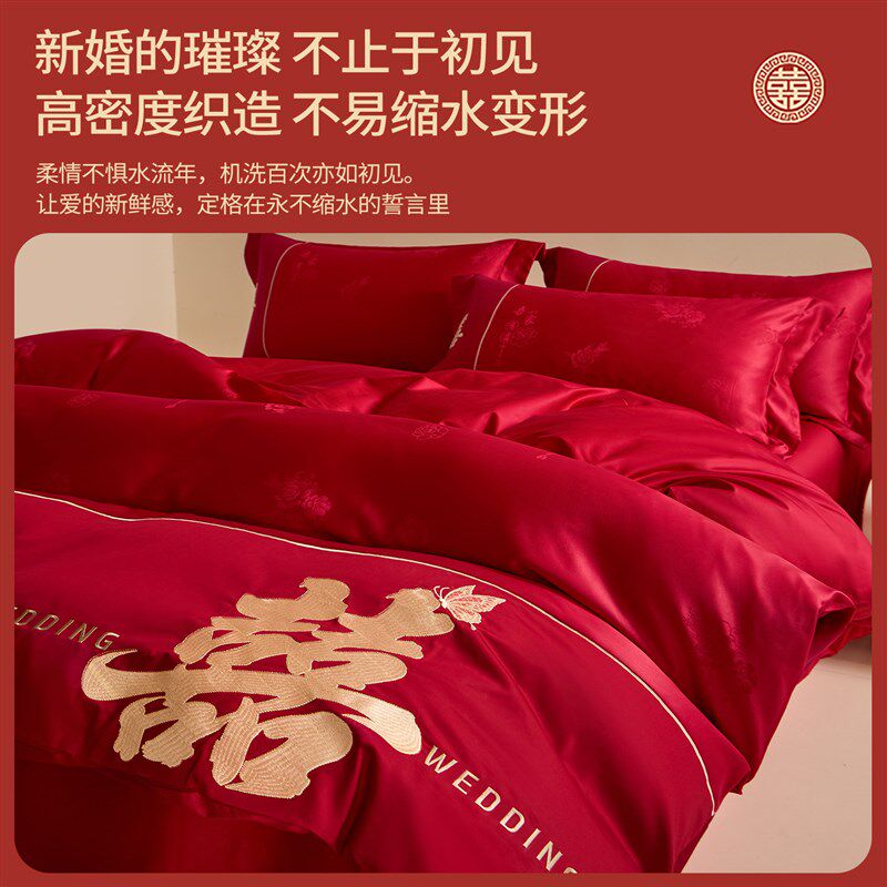 高档大红色结婚磨毛四件套2025新款婚嫁婚房喜被床单被套床上用品