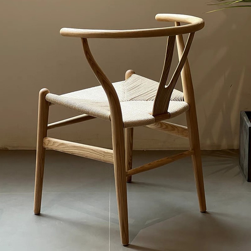 新中式实木藤编y椅复古麻绳书房扶手靠背餐桌泡茶椅胡桃圈椅凳子