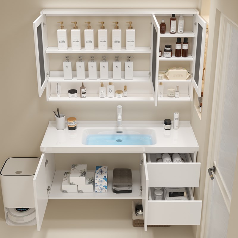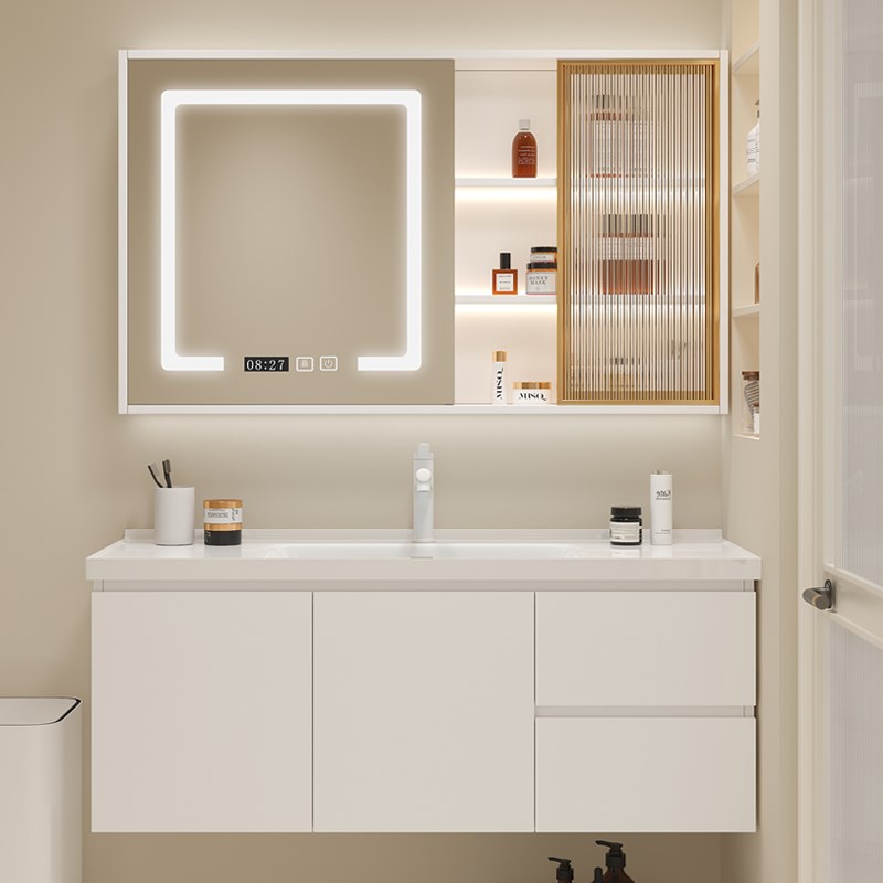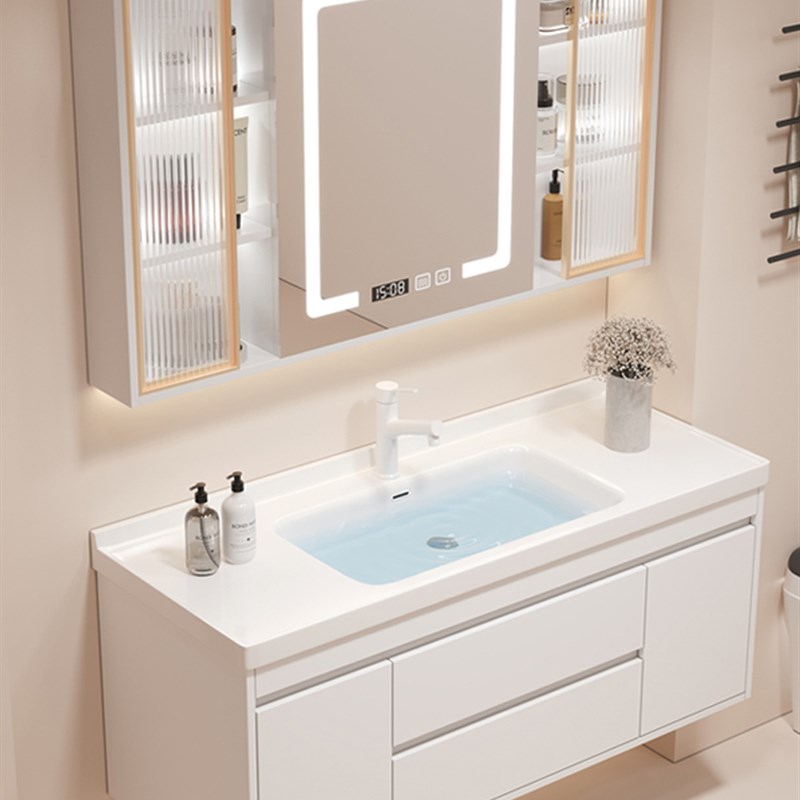 智能浴室柜轻奢实木n浴室柜卫生间洗漱台悬挂式洗手盆柜组合陶瓷