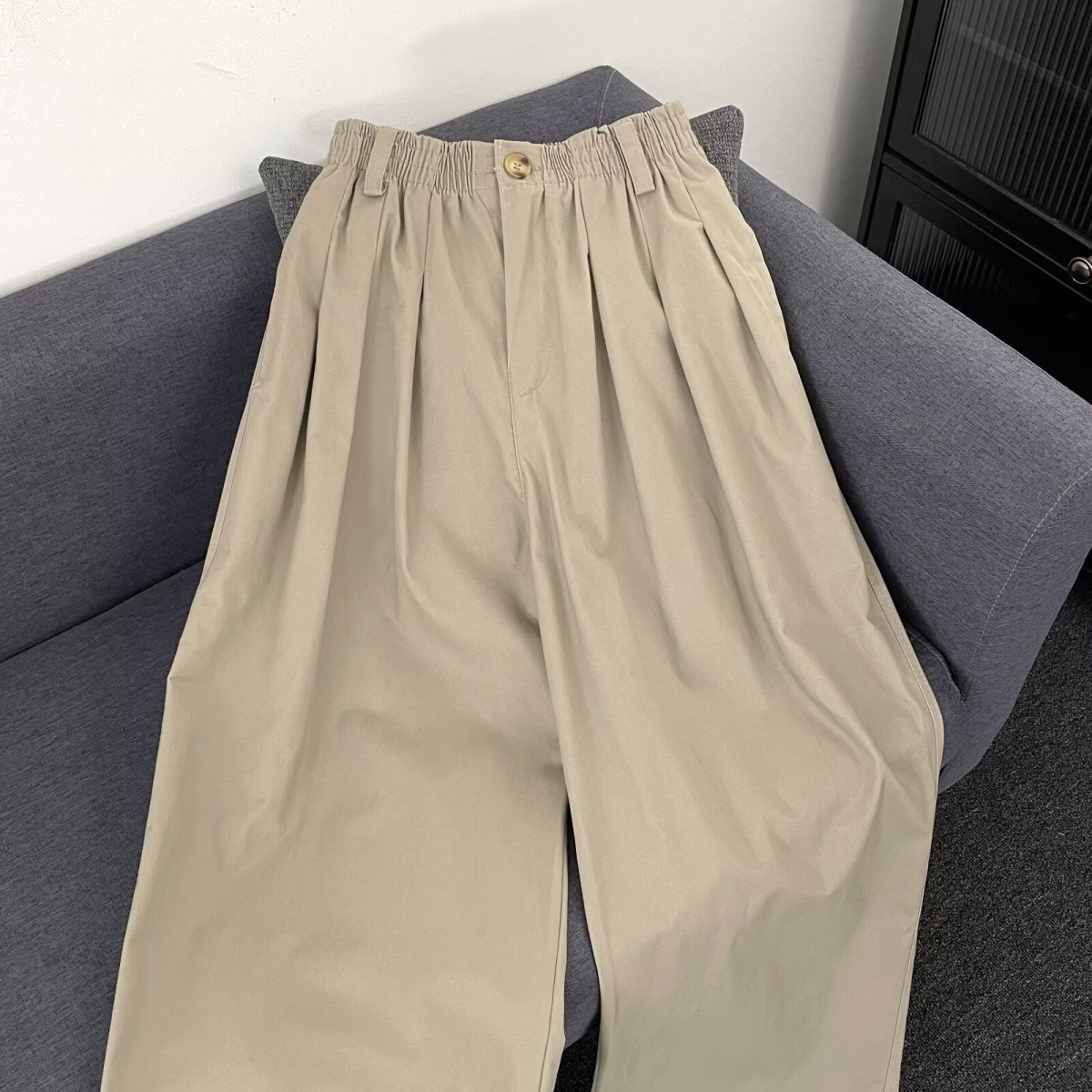 日系新款春秋季复古卡其色西裤男女生直筒宽松百搭工装休闲长裤子