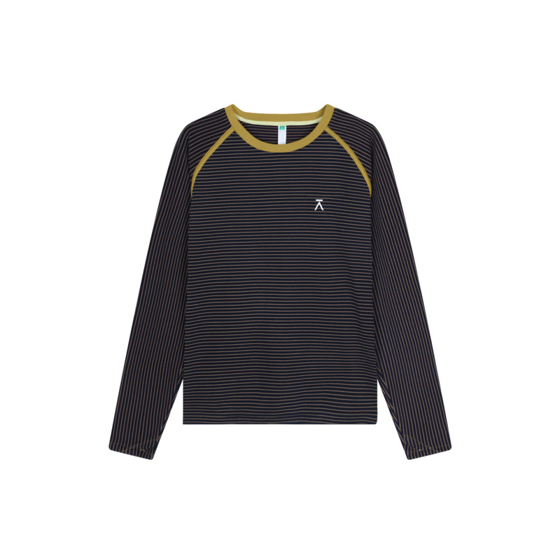 ACMEITEM爱棵米 亲子抓绒拼色条纹插肩袖保暖长袖T恤合体上衣男女