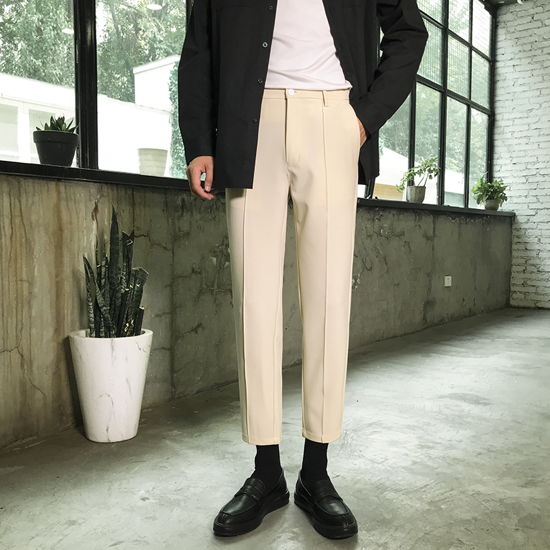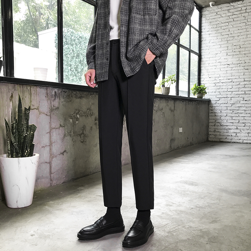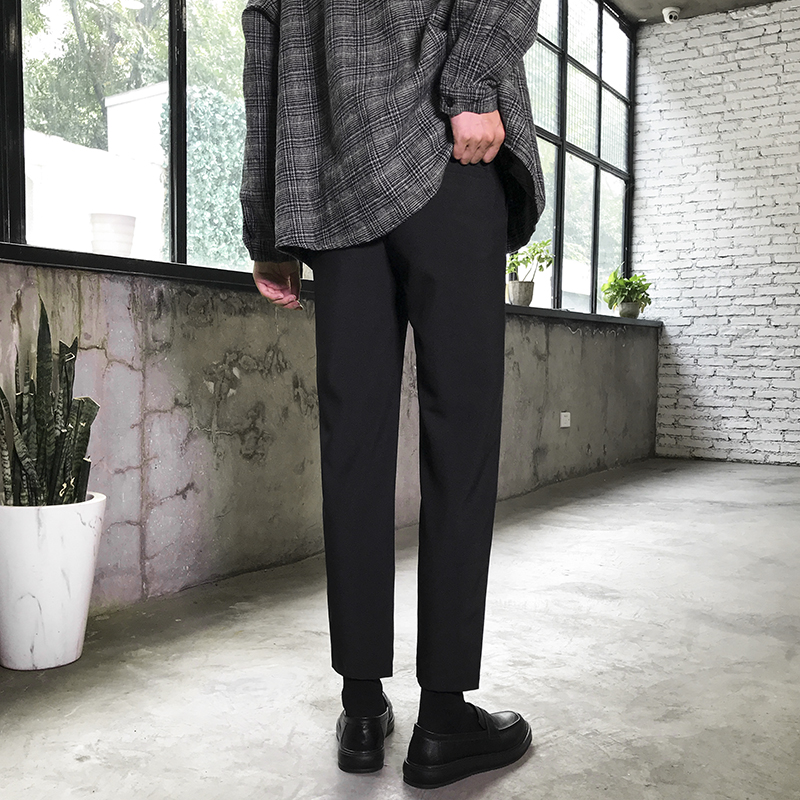 春季九分裤男修身垂感西裤韩版男士小脚休闲裤ins潮流黑色西装裤