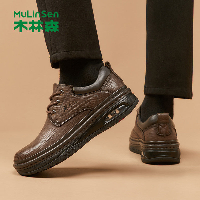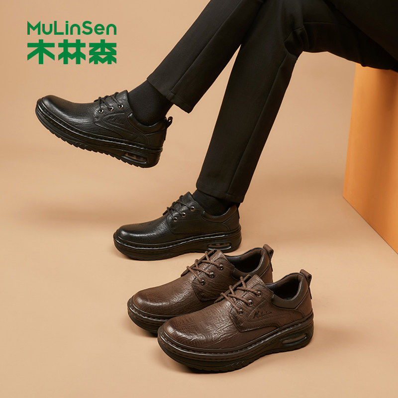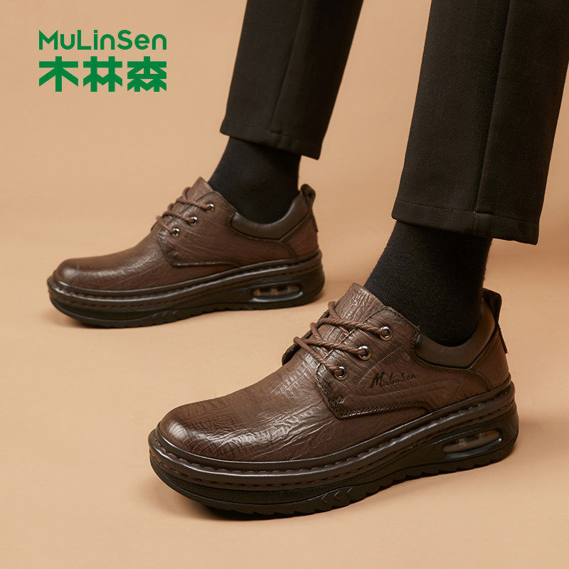 木林森男鞋秋季厚底皮鞋男真皮商务休闲鞋高档头层牛皮男士爸爸鞋