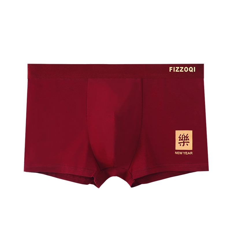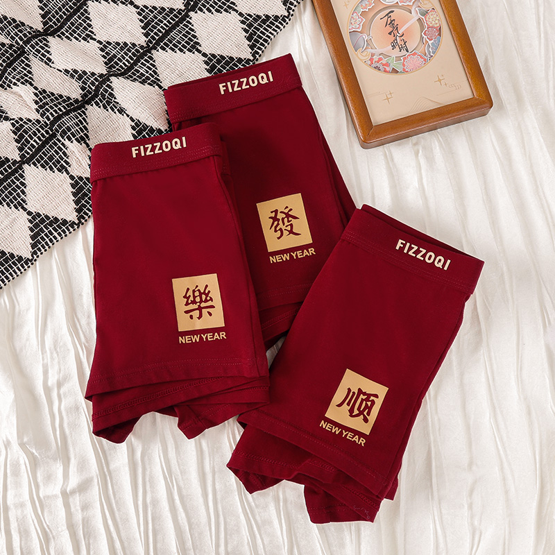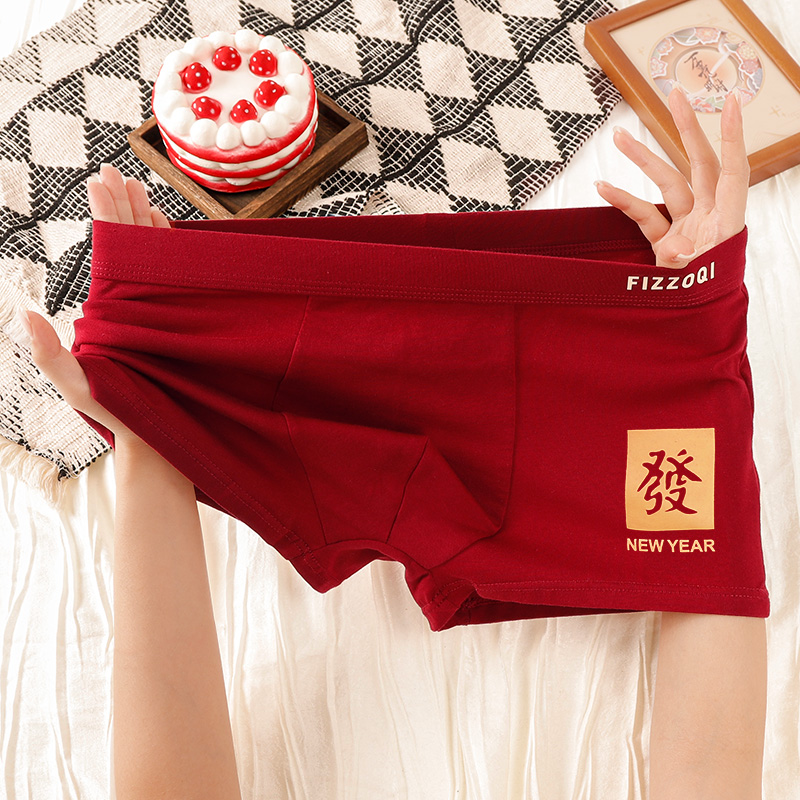 本命年红色男士内裤纯棉透气男生平角裤结婚喜事送礼短裤头个性潮
