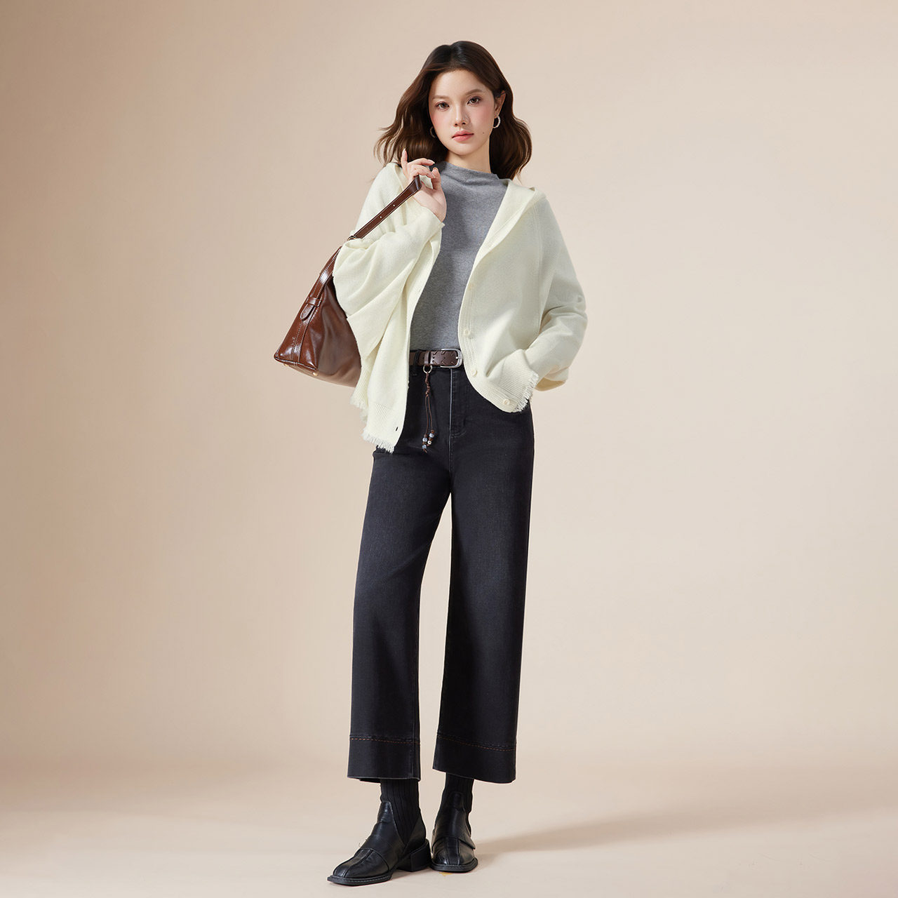 IEF/爱依服2025早秋新款法式温柔休闲通勤气质百搭宽松毛织外套
