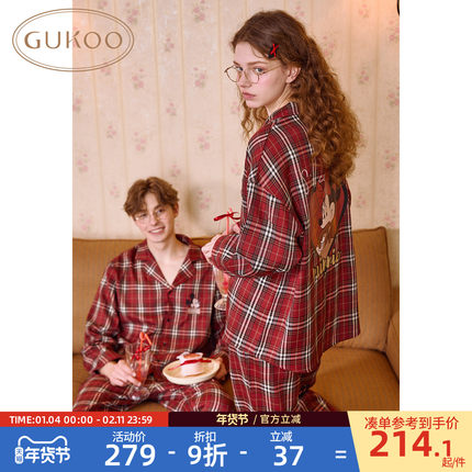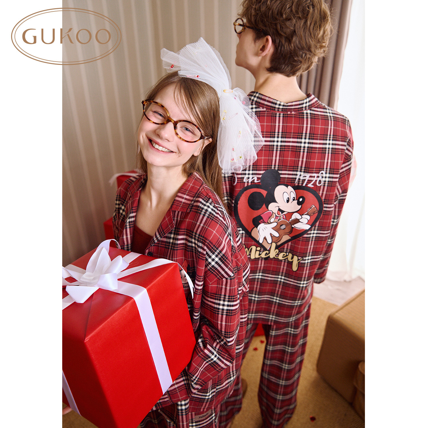Gukoo/果壳红色结婚情侣睡衣迪士尼2025女新款睡衣纯棉男睡衣C