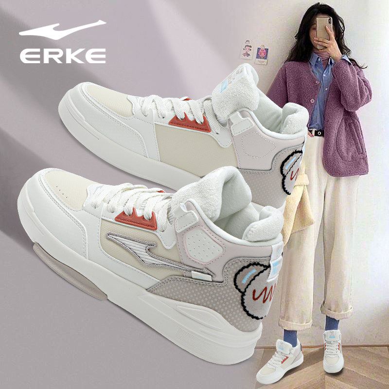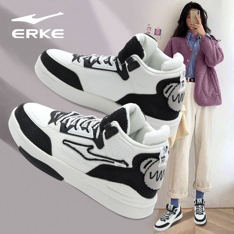 鸿星尔克电池熊猫板鞋秋冬新款女士百搭高帮休闲鞋厚底轻便运动鞋