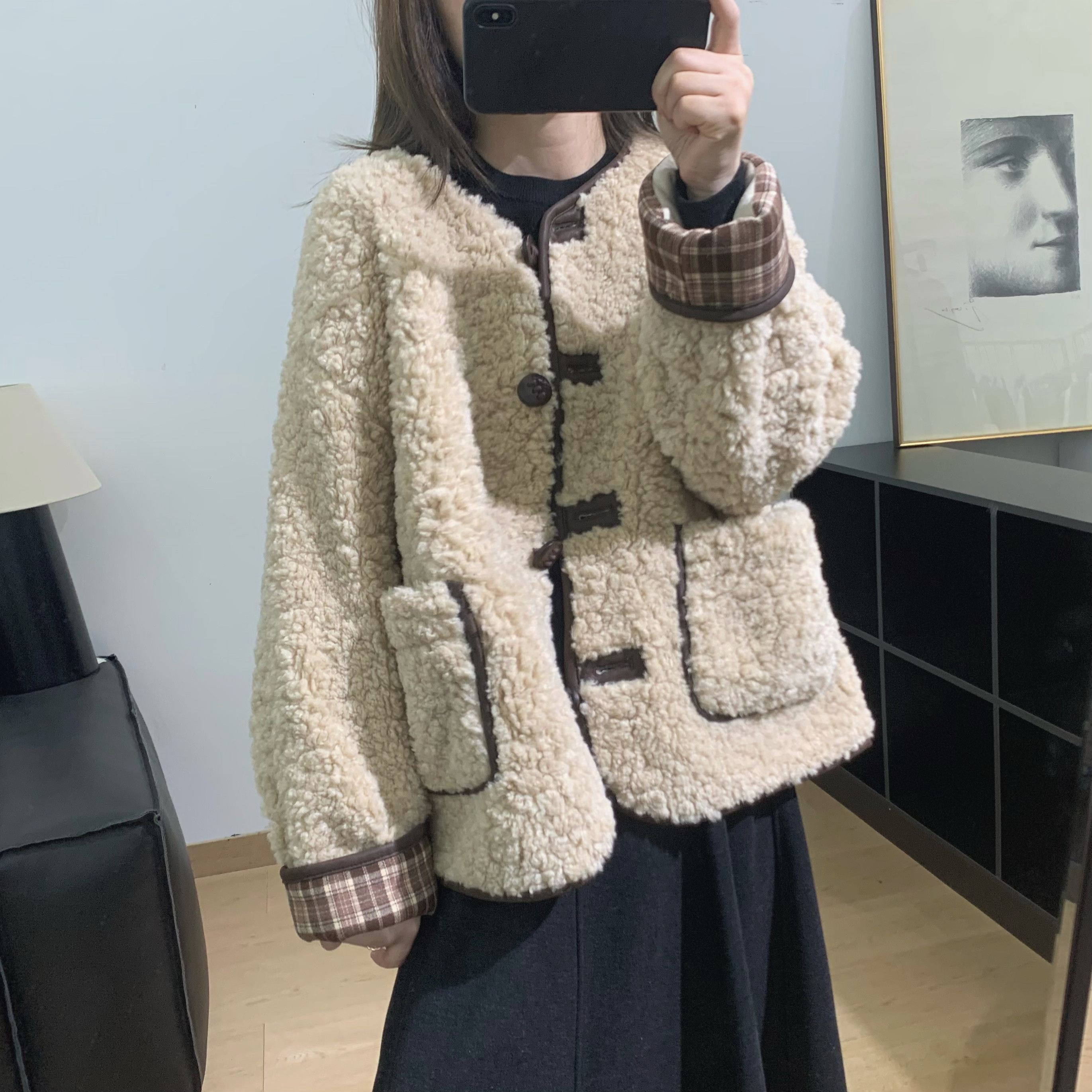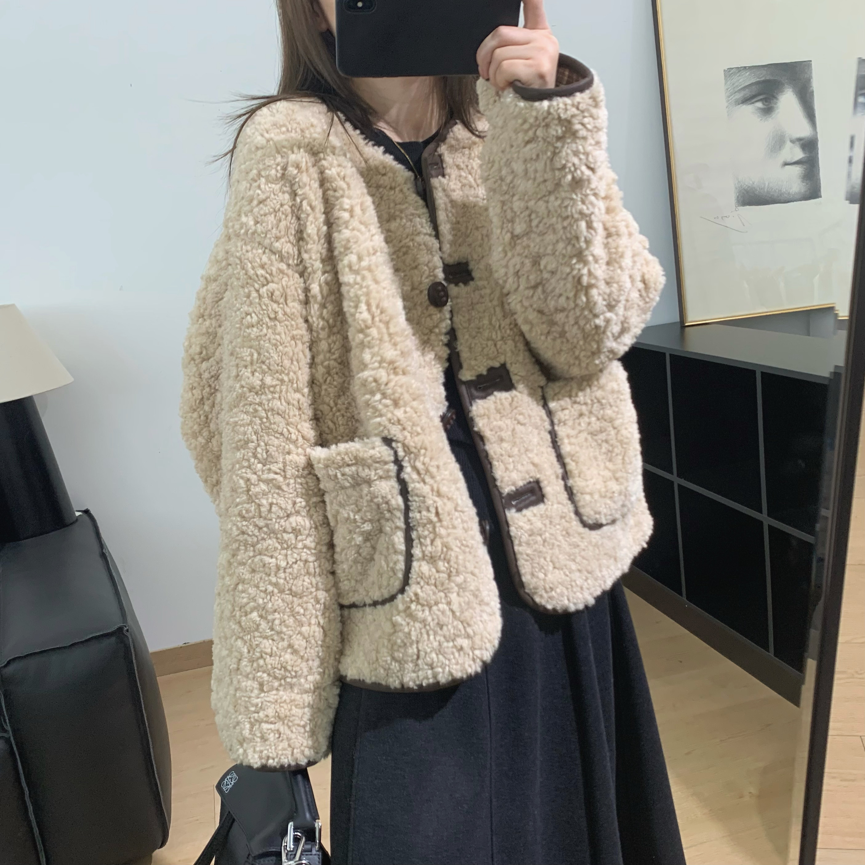 小香风毛毛外套羊羔毛上衣