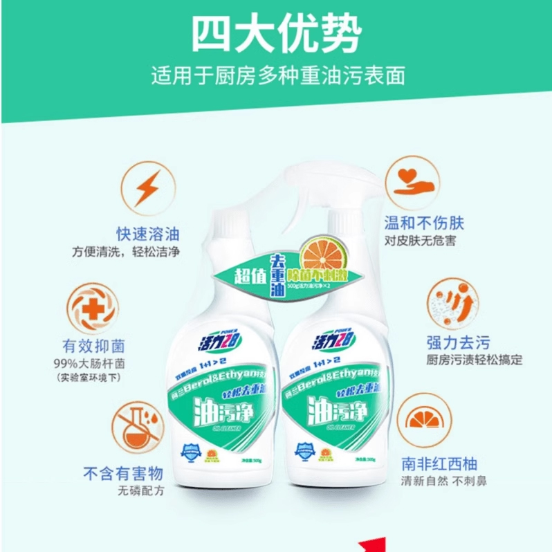 活力28除油污清洗剂500g*2瓶油污净厨房去油污强力油烟机清洗剂b