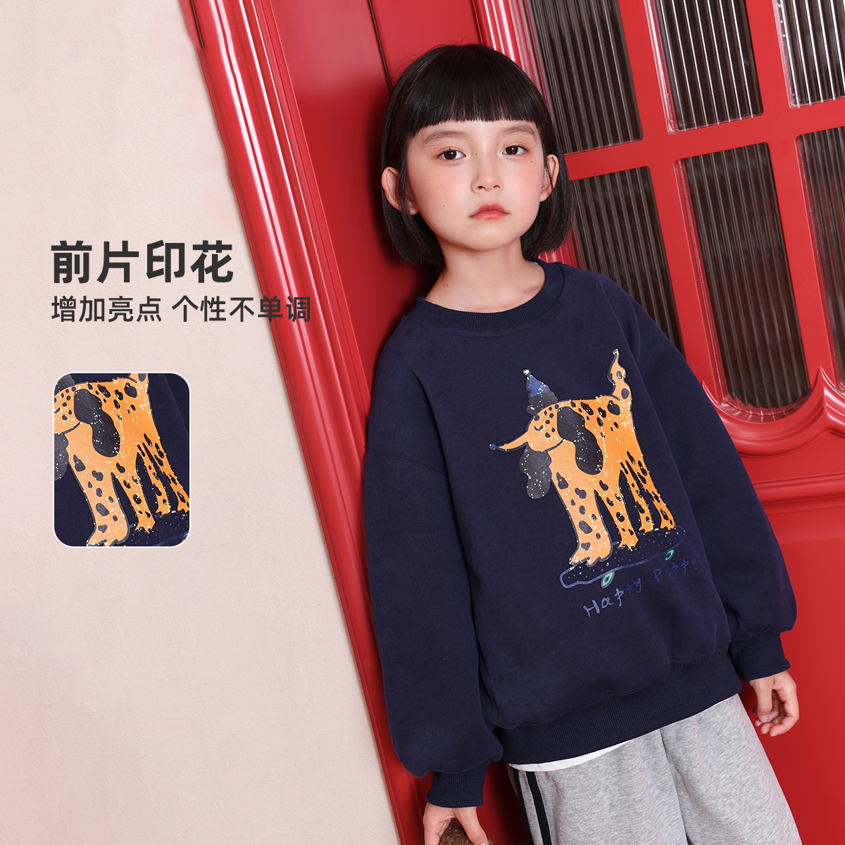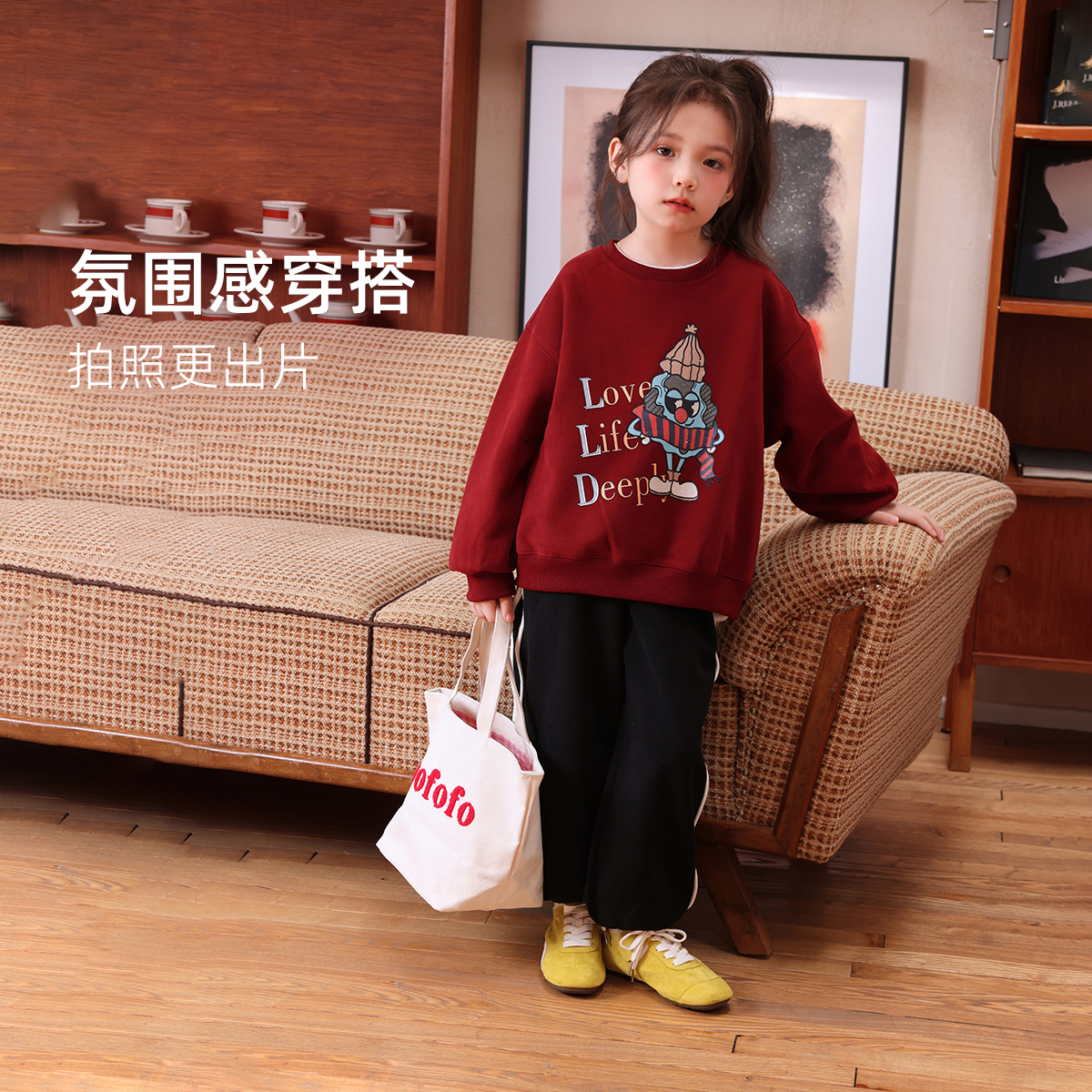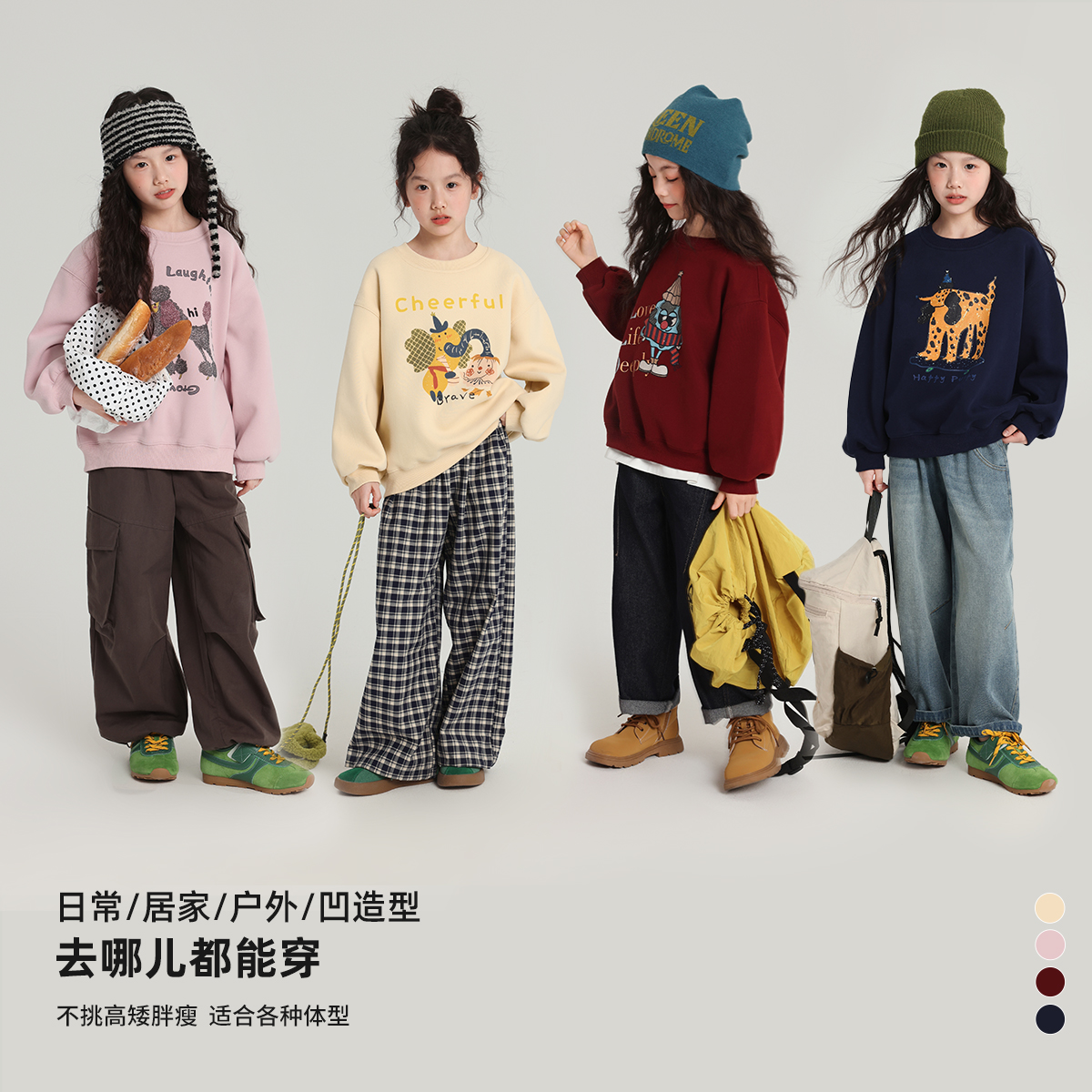 布丁哈鲁童装秋装女童休闲上衣2025春秋新款儿童卡通字母卫衣潮酷