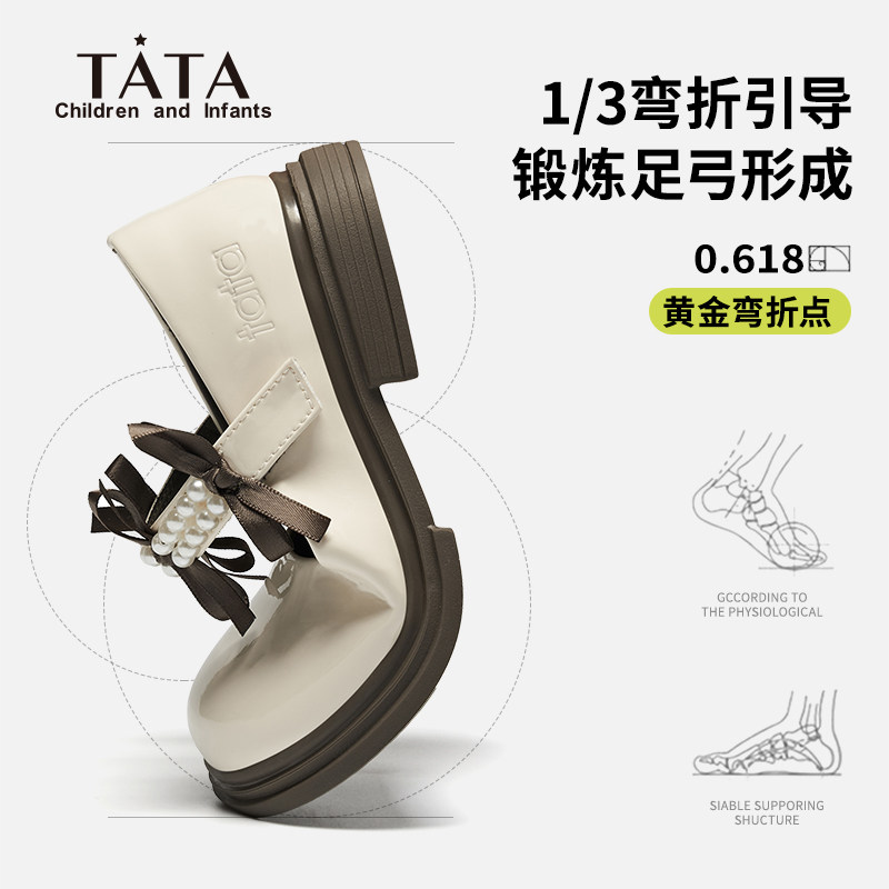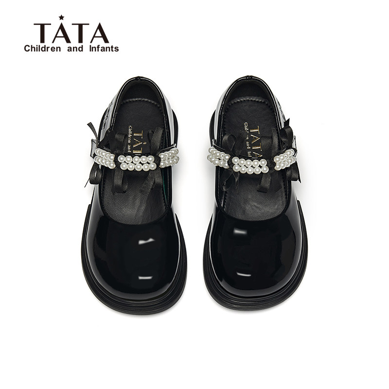 TATA童鞋儿童小皮鞋女童法式公主鞋黑色玛丽珍鞋软底英伦风单鞋子