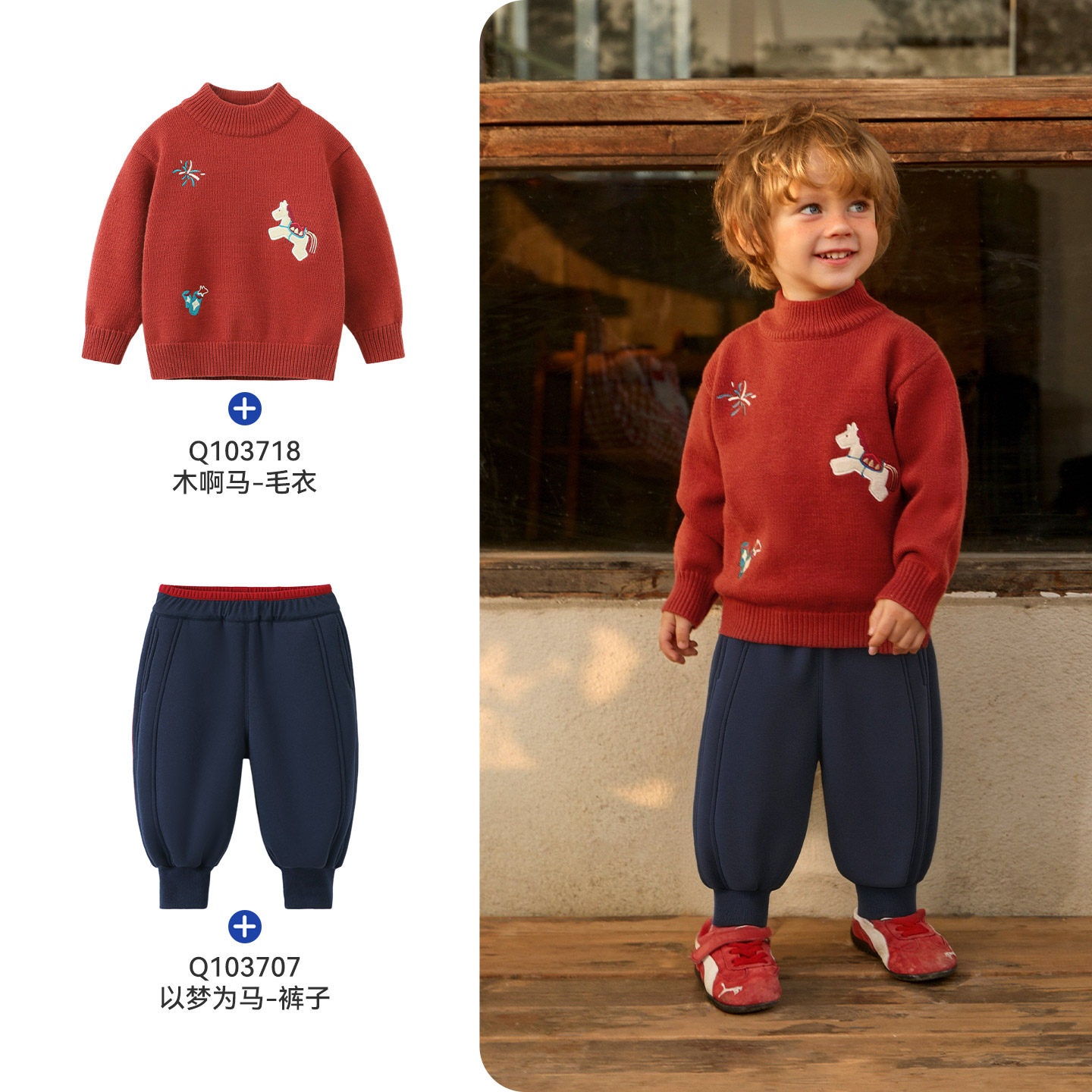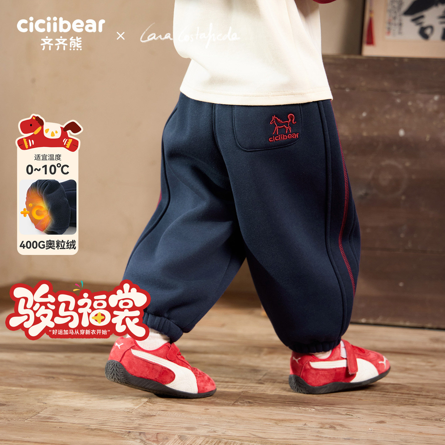 [520G]齐齐熊男童裤子加绒新年