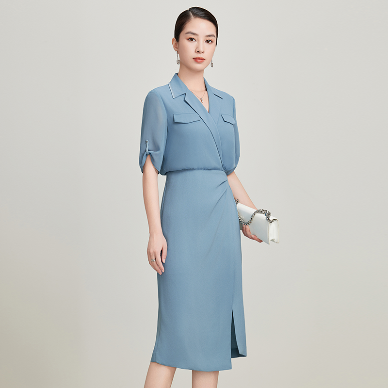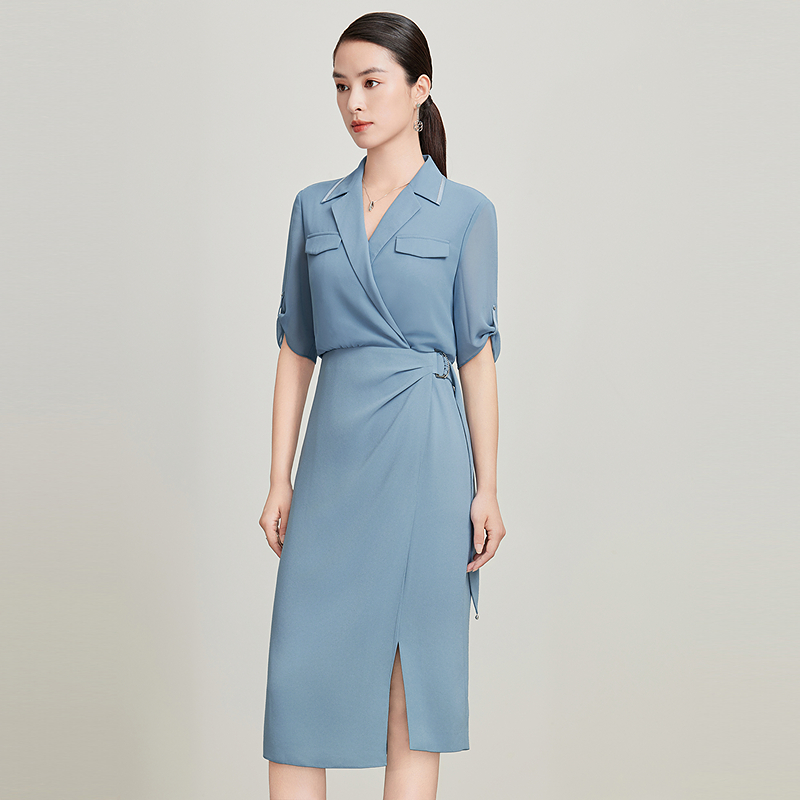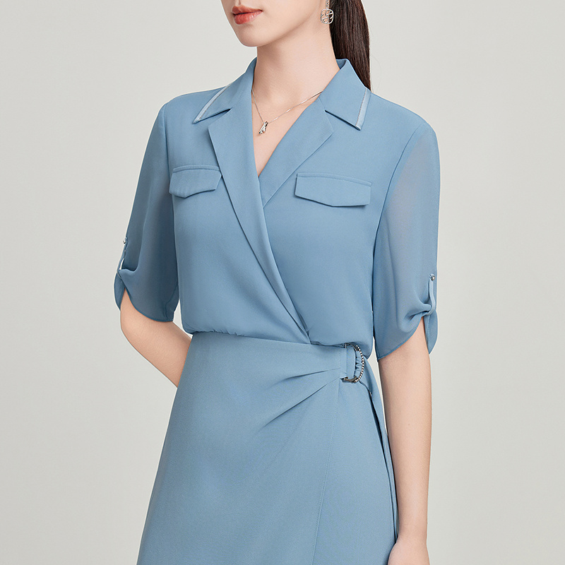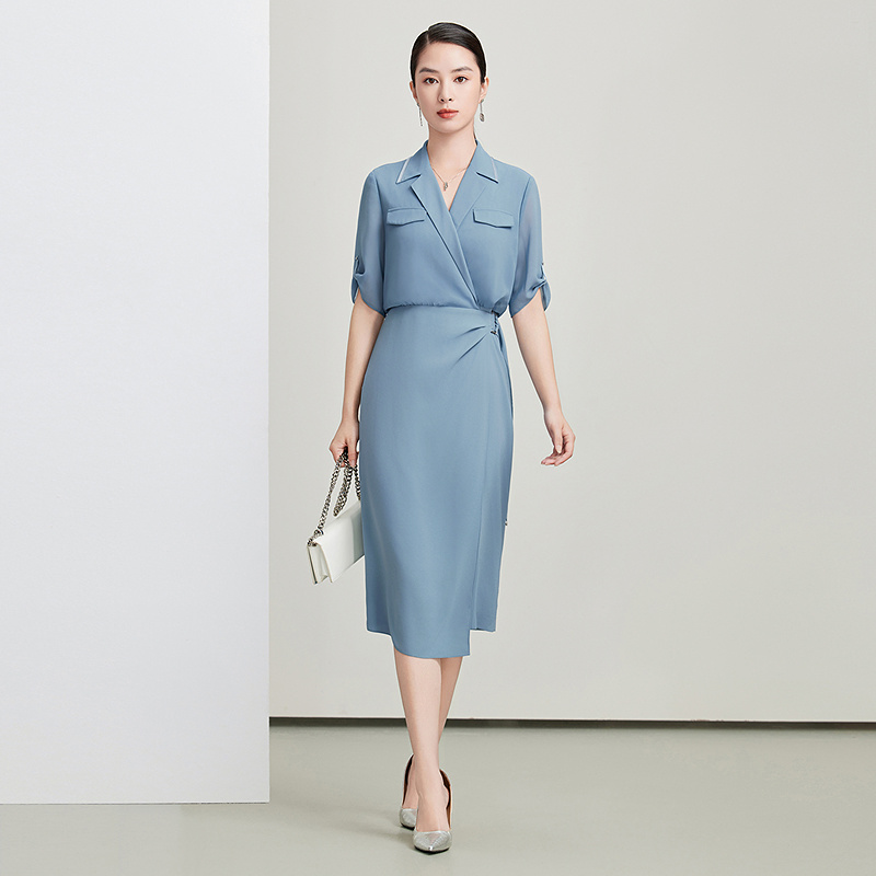 赢智尚蓝色连衣裙夏季女2025新款减龄修身显瘦裙子简单大方衬衫裙