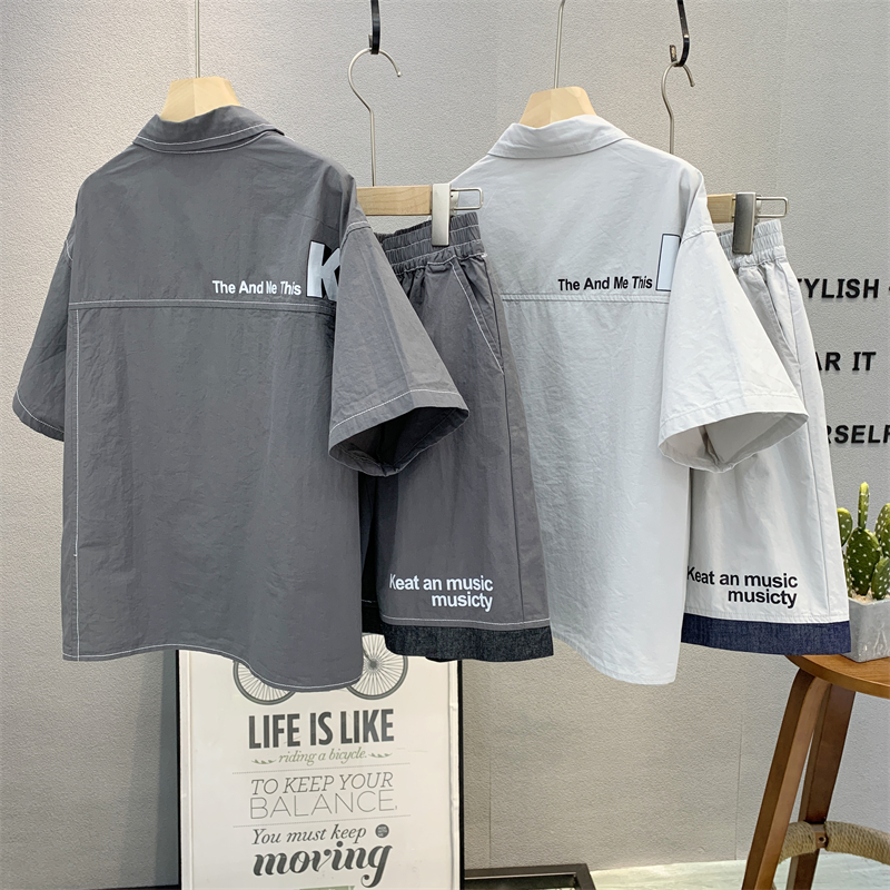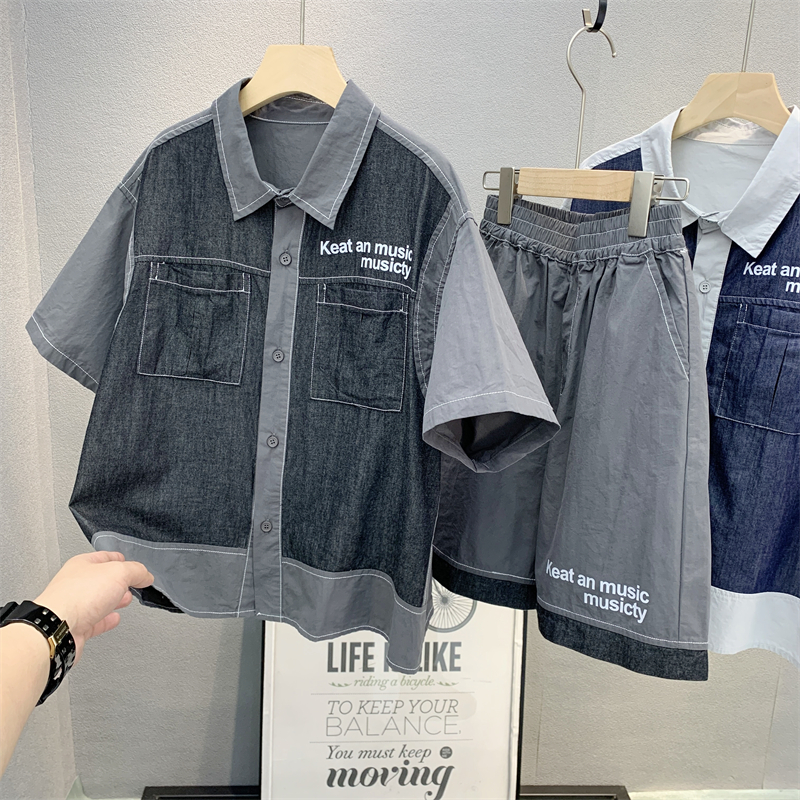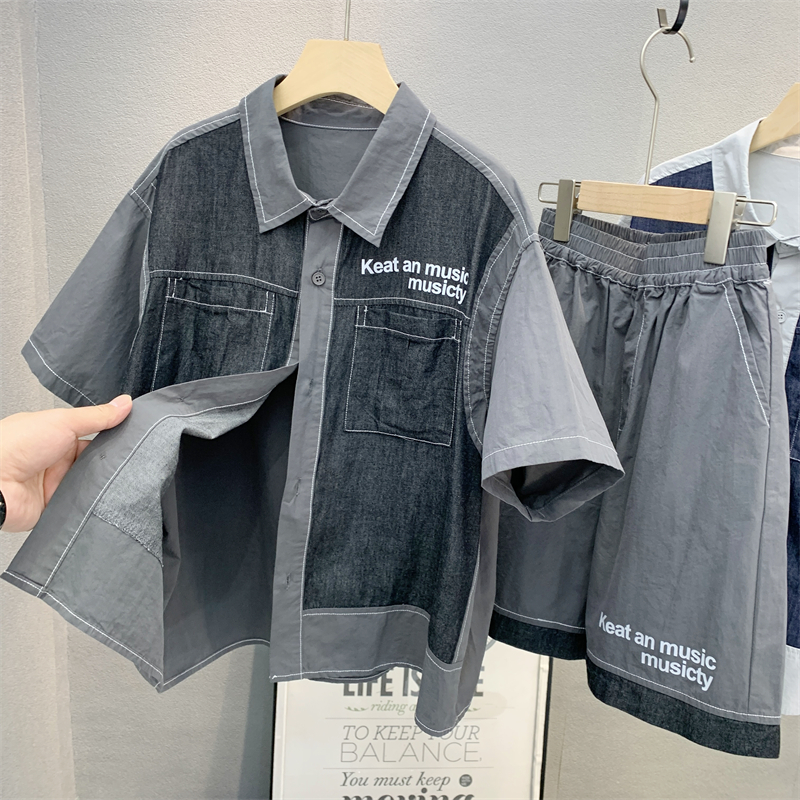 卡芙恰恰童装 儿童韩版套装2025夏款宽松潮流牛仔短袖+裤子25TZ01