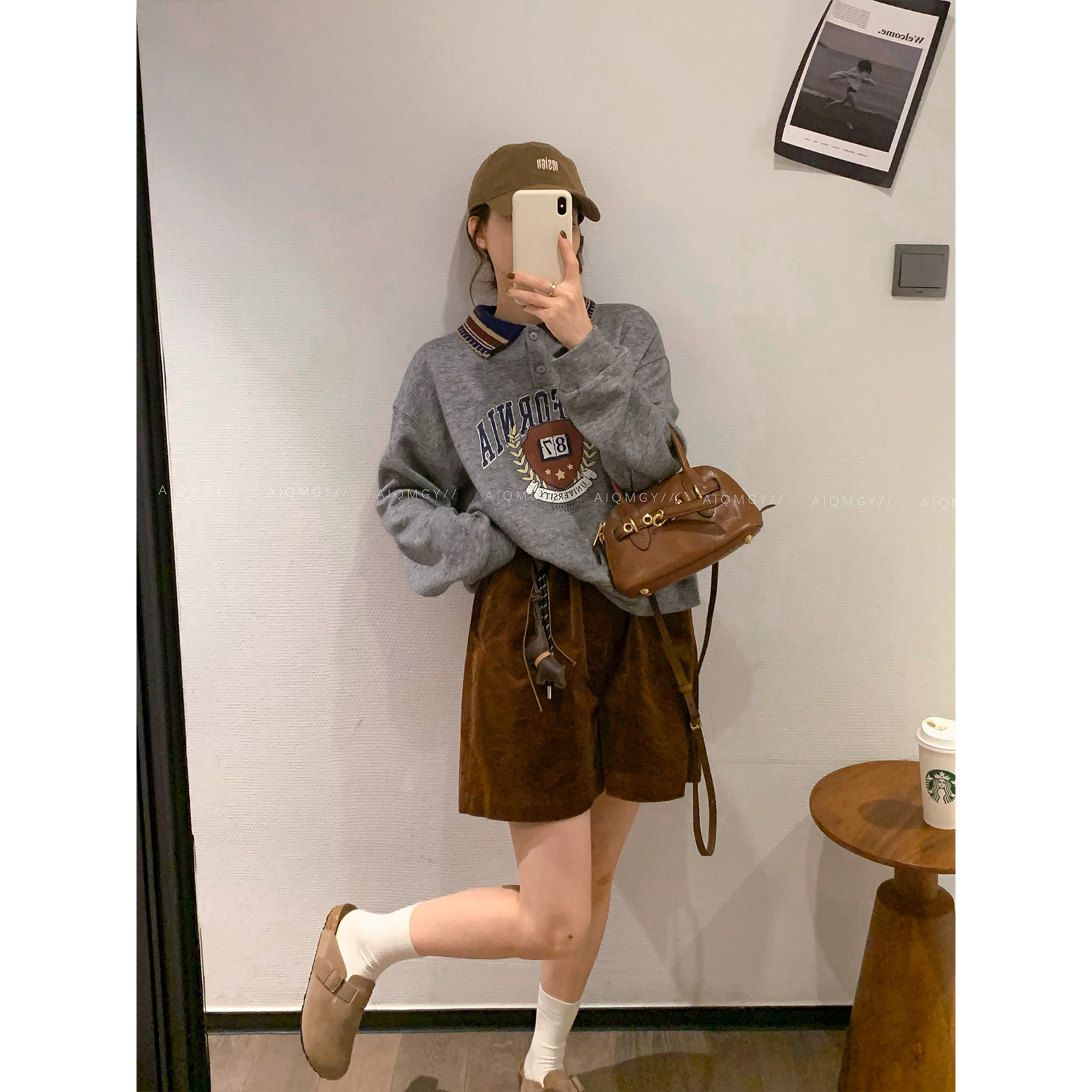 爱情魔鬼鱼 杏色POLO领字母针织衫女2025年秋季新款宽松套头上衣