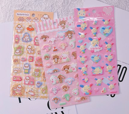 日系卡通可爱花朵小兔贴纸手帐咕卡少女心立体PVC防水装饰贴画纸