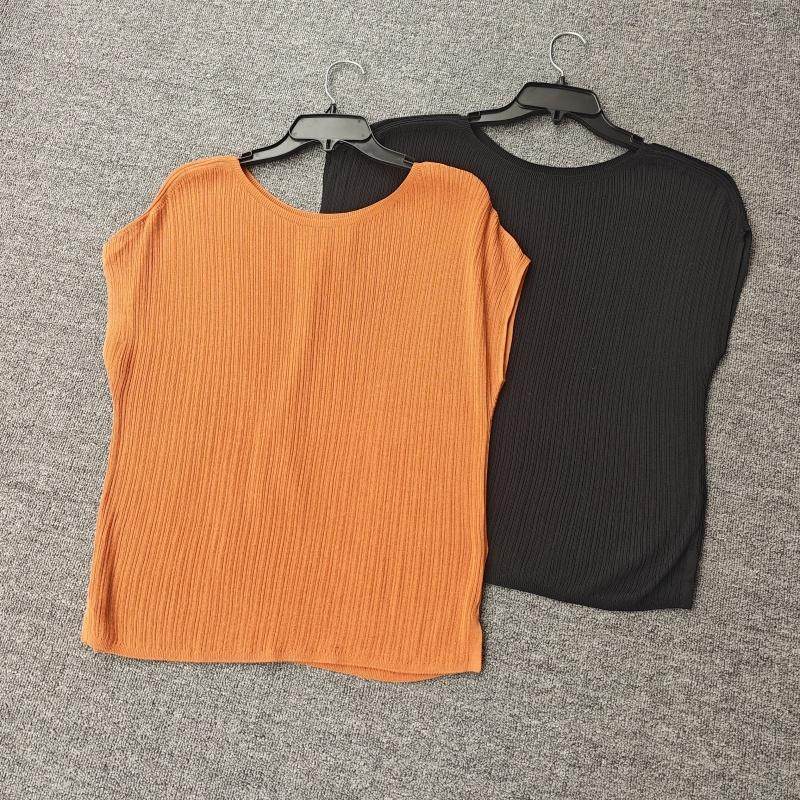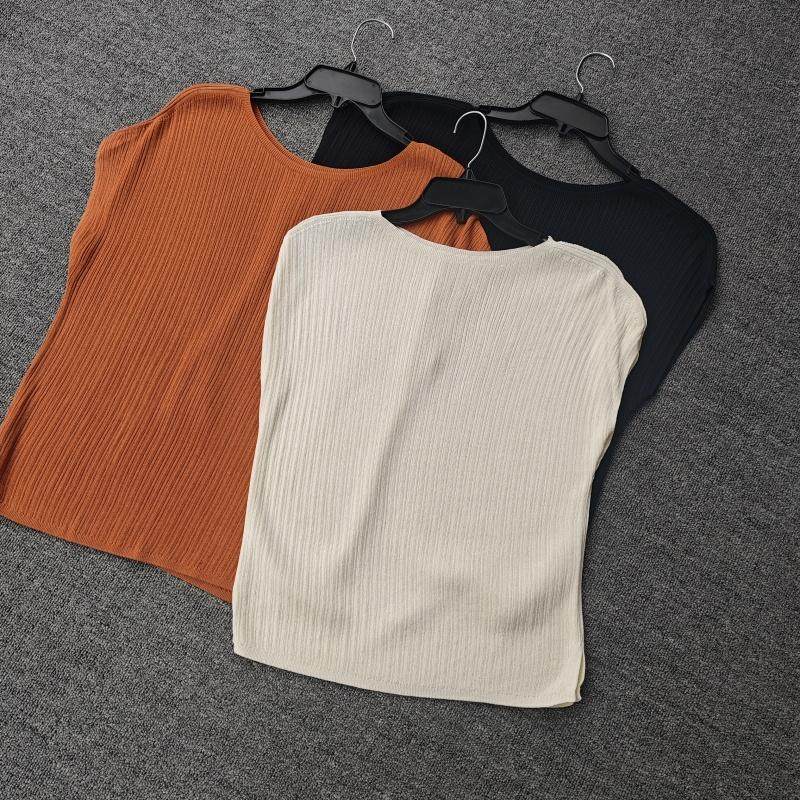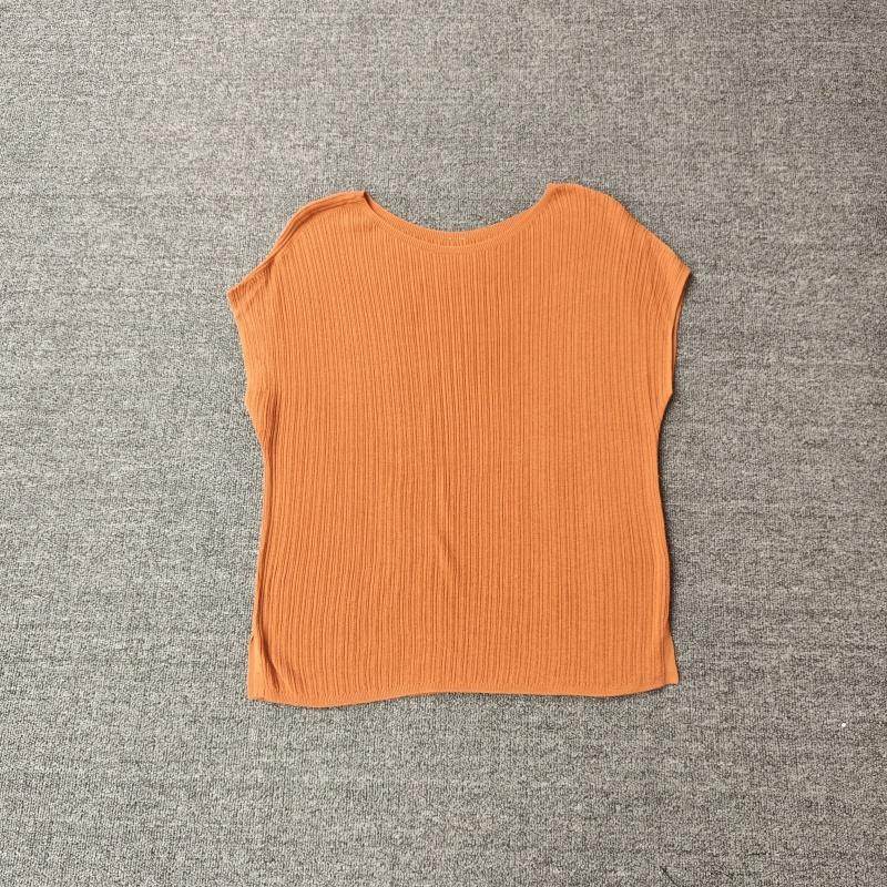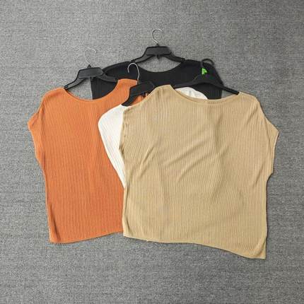 夏季女装麻混纺高弹显瘦宽松薄款无袖圆领套头针织亚麻冰丝短袖衫