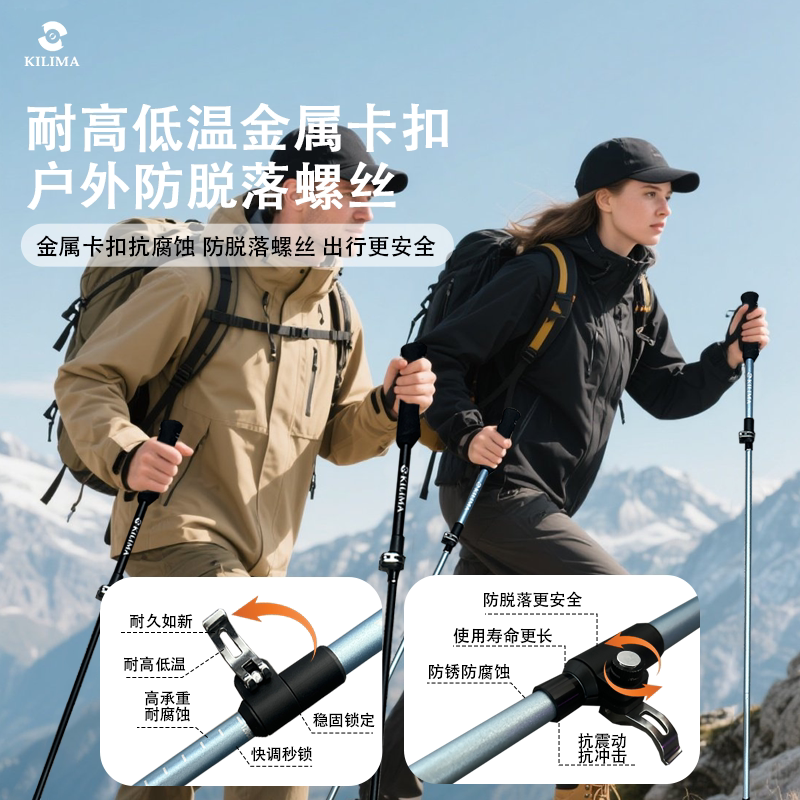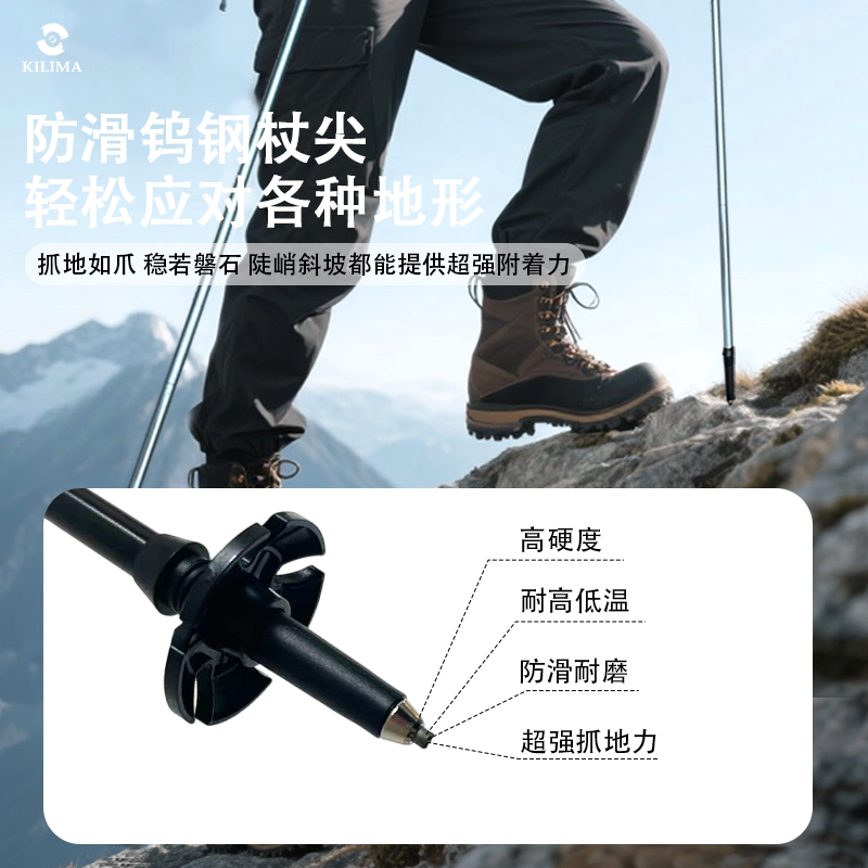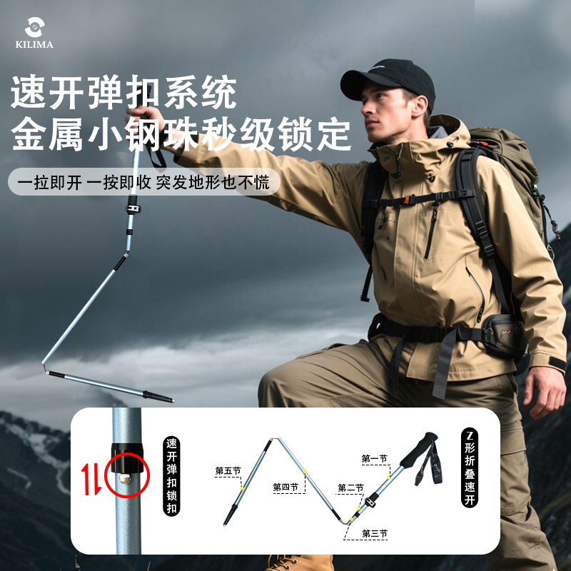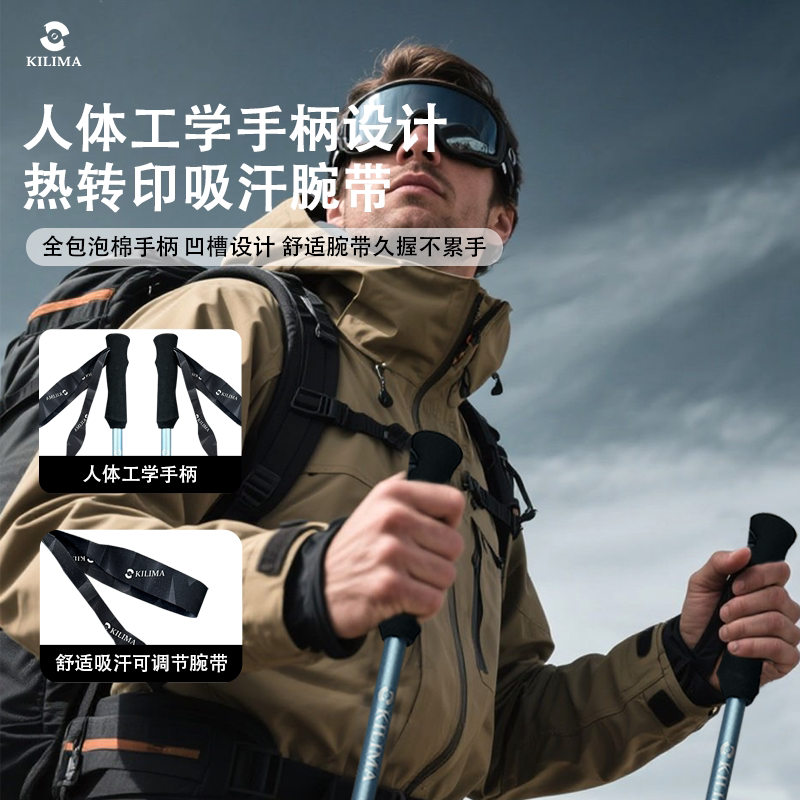 KILIMA乞力马登山杖铝合金折叠伸缩轻量高强度户外防滑徒步男女棍