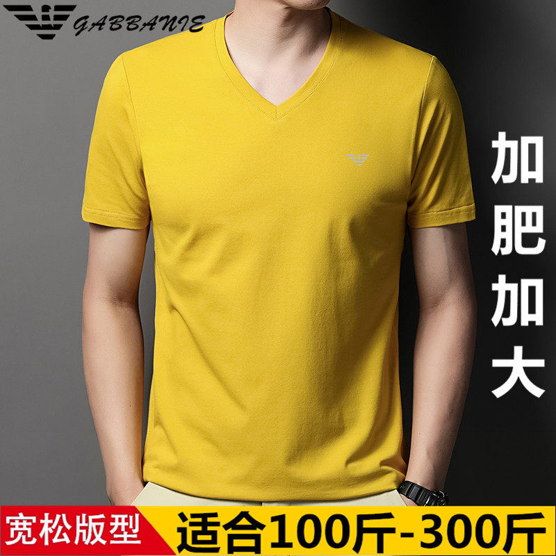GABBANIE夏季男士纯棉休闲短袖T恤胖子恤加肥加大码宽松透气体恤