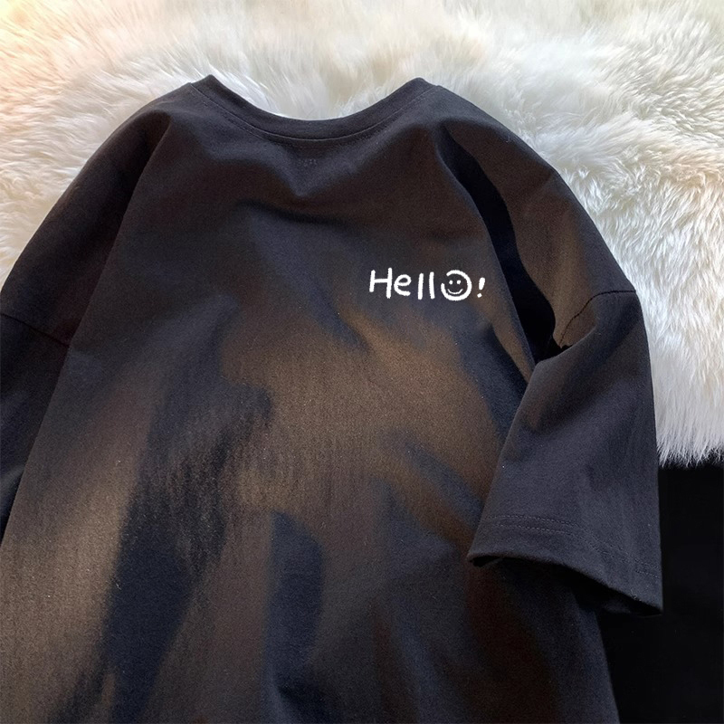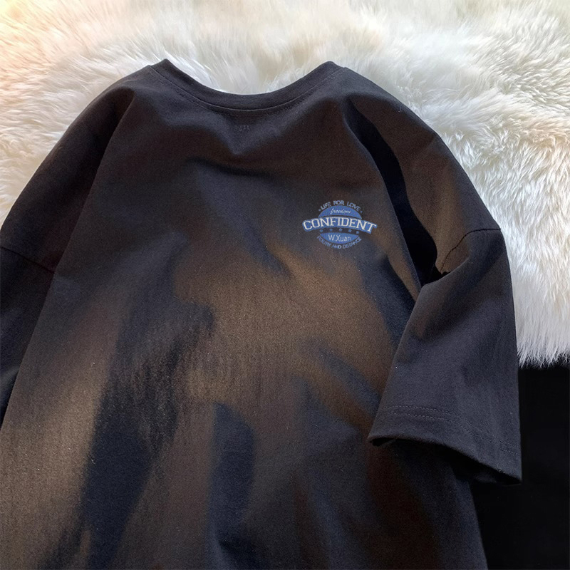 新款男士短袖t恤冰丝宽松圆领ins学生简约百搭加肥大码上衣打底衫