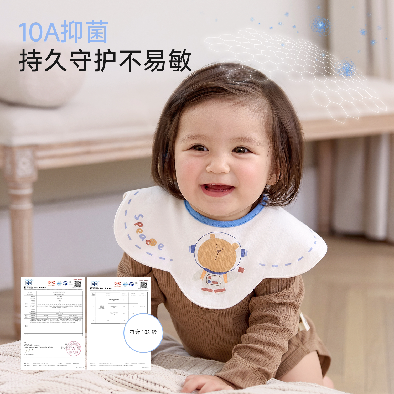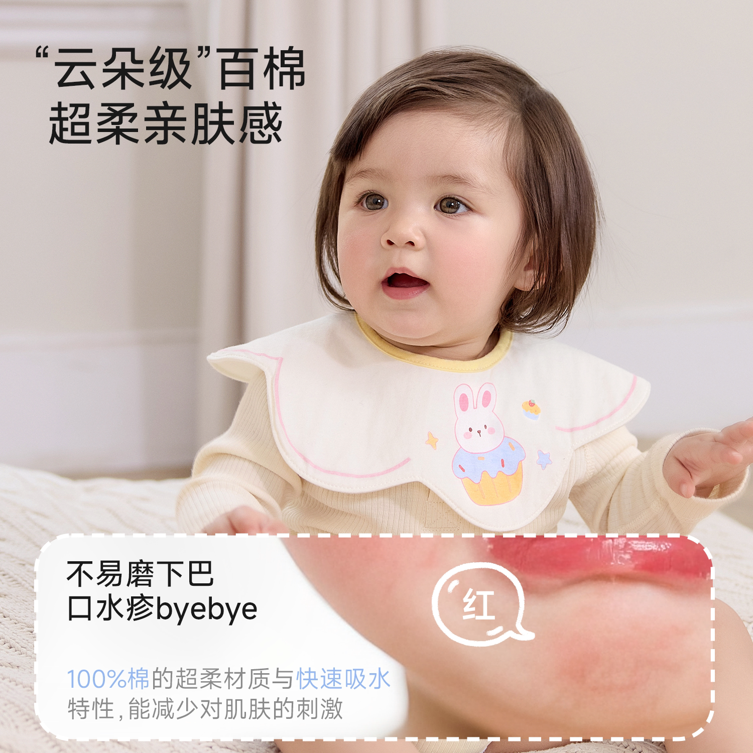 尼多熊纯棉防水防吐奶花瓣围嘴