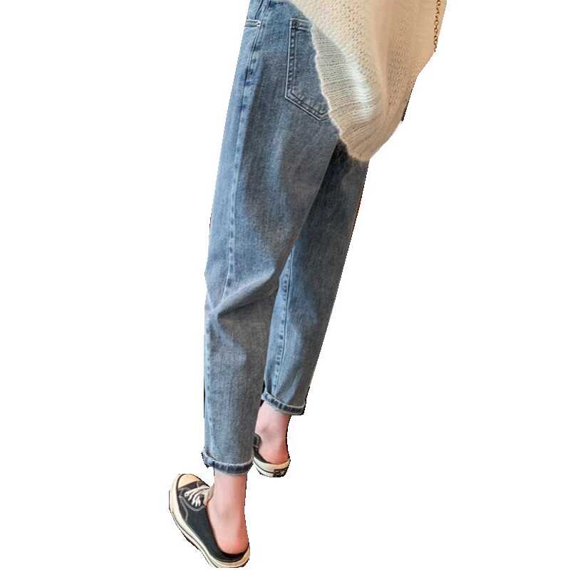 孕妇牛仔裤春秋款外穿哈伦裤宽松薄款破洞九分老爹裤女夏时尚裤子