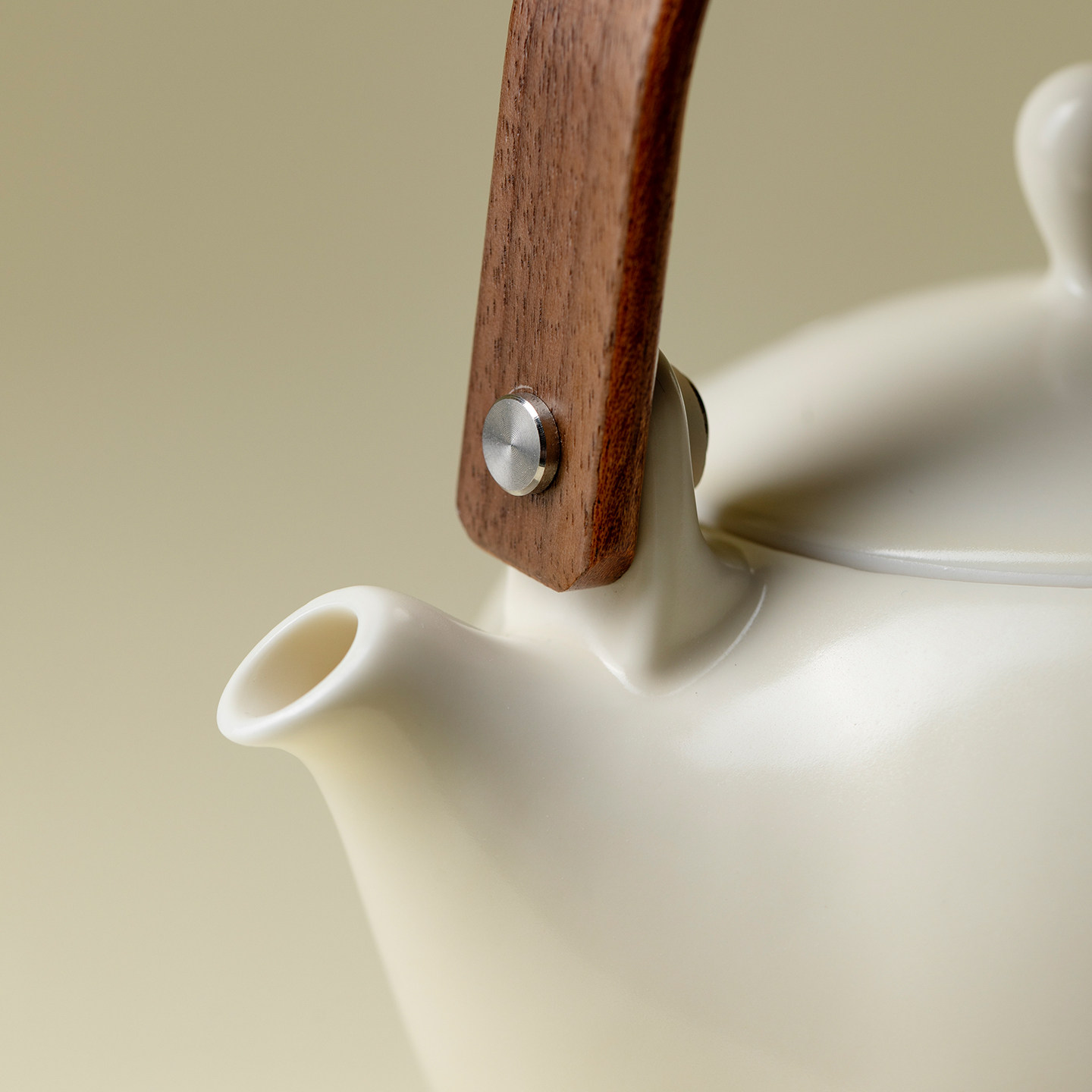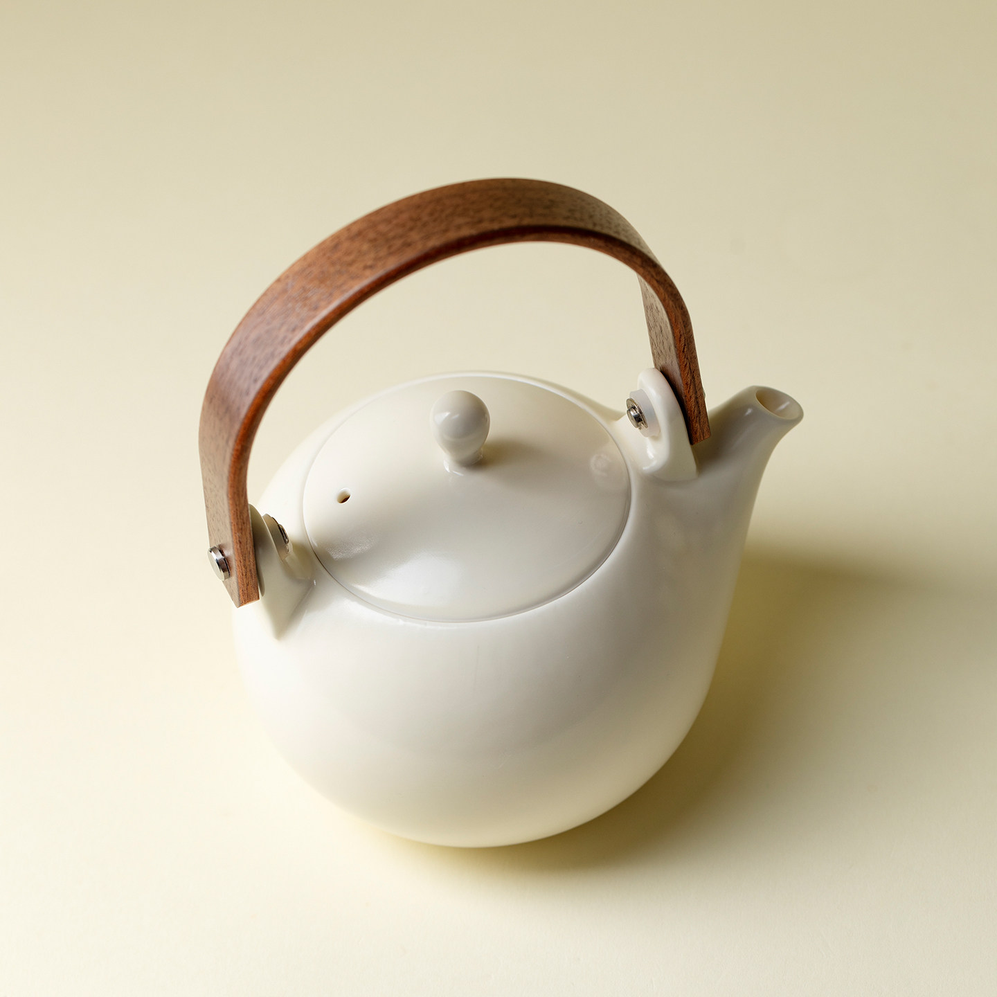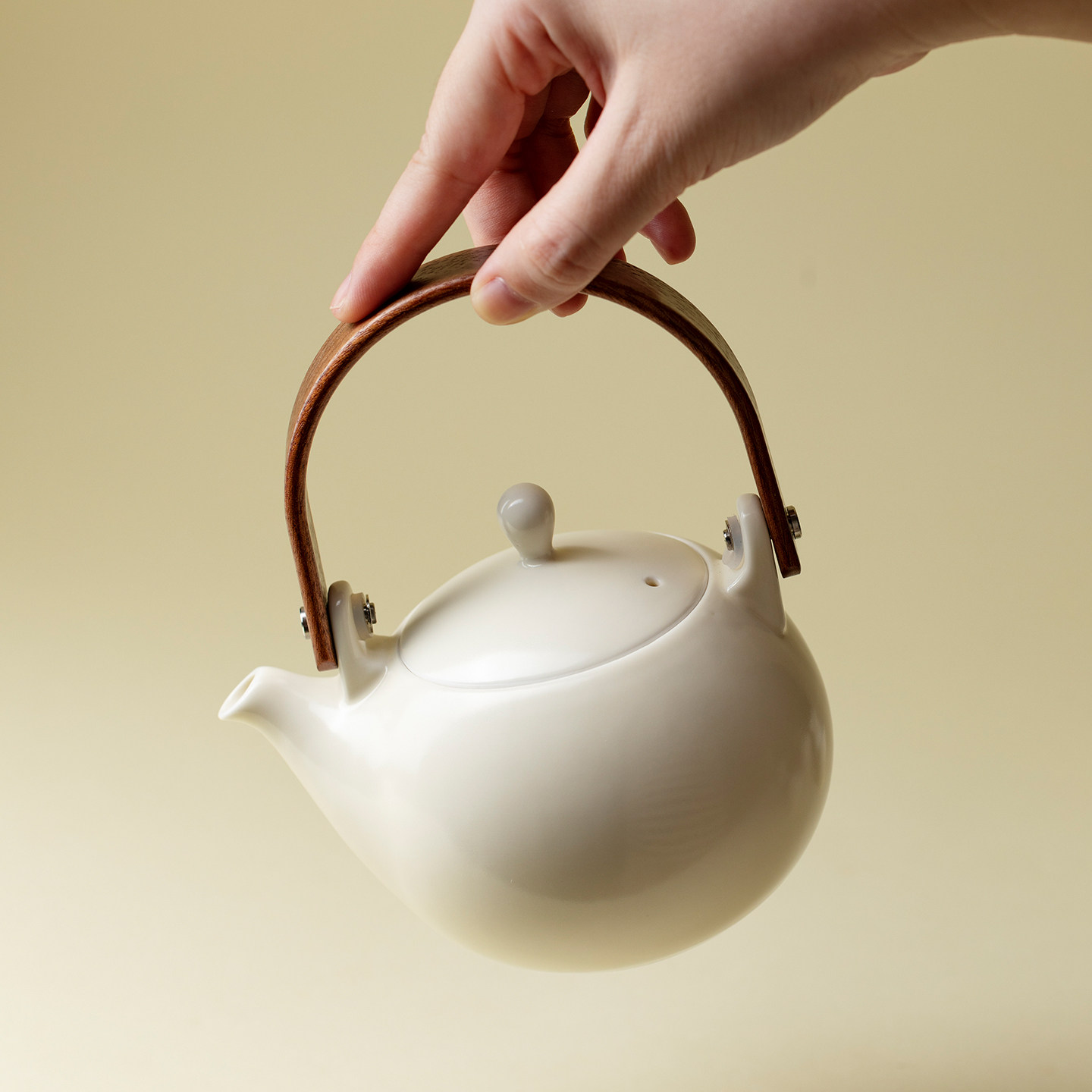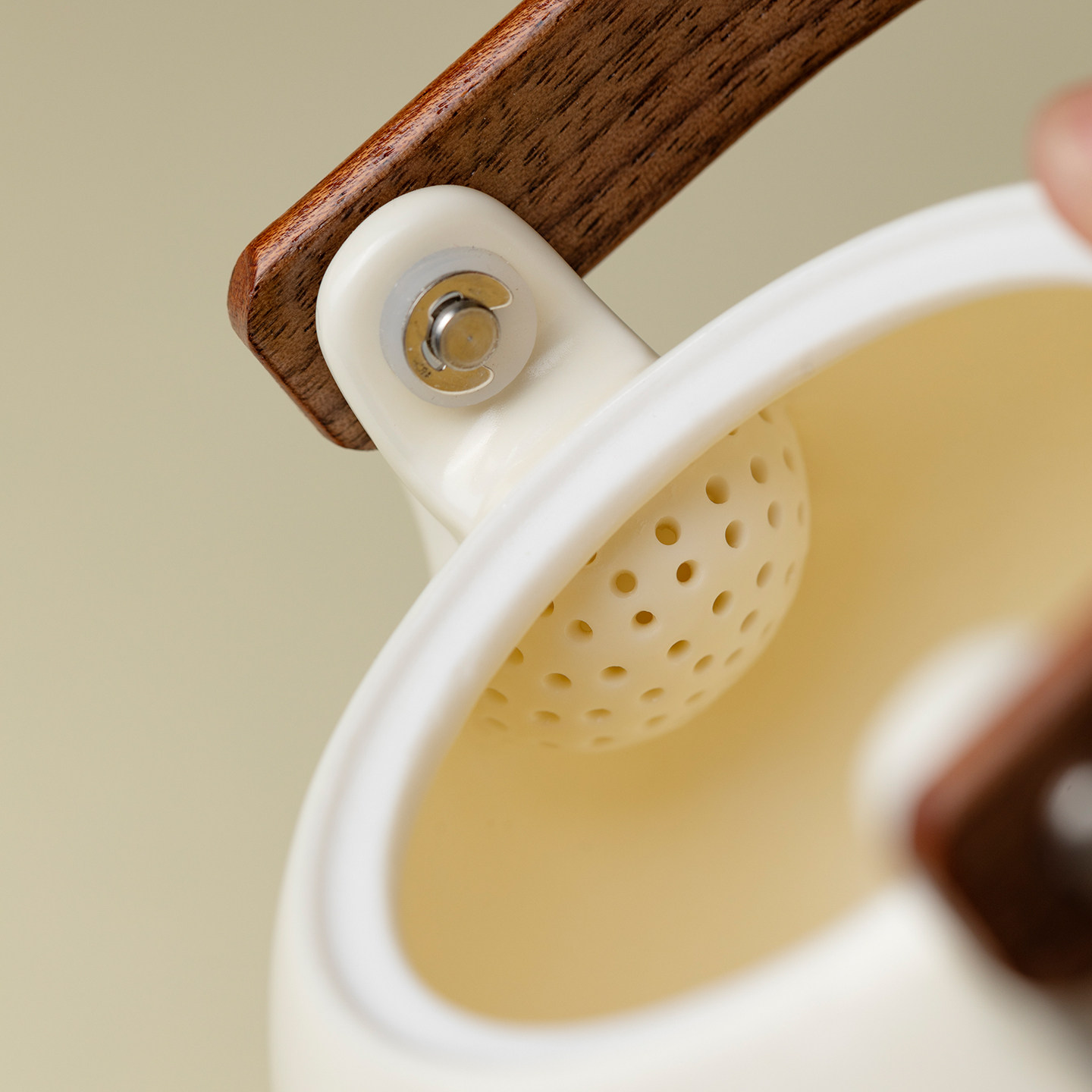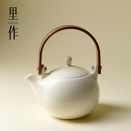 里作米黄简约提梁壶陶瓷茶壶家用办公室日式带球孔过滤泡茶器单壶