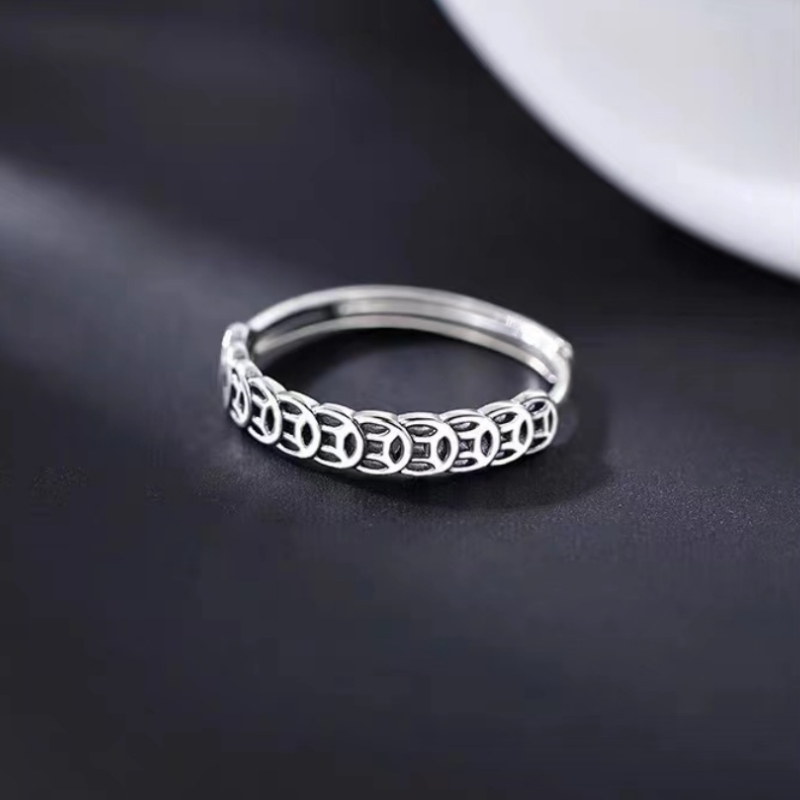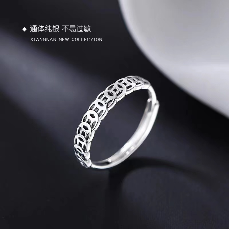 925纯银铜钱戒指轻奢小众设计食指戒女开口戒高级感尾戒