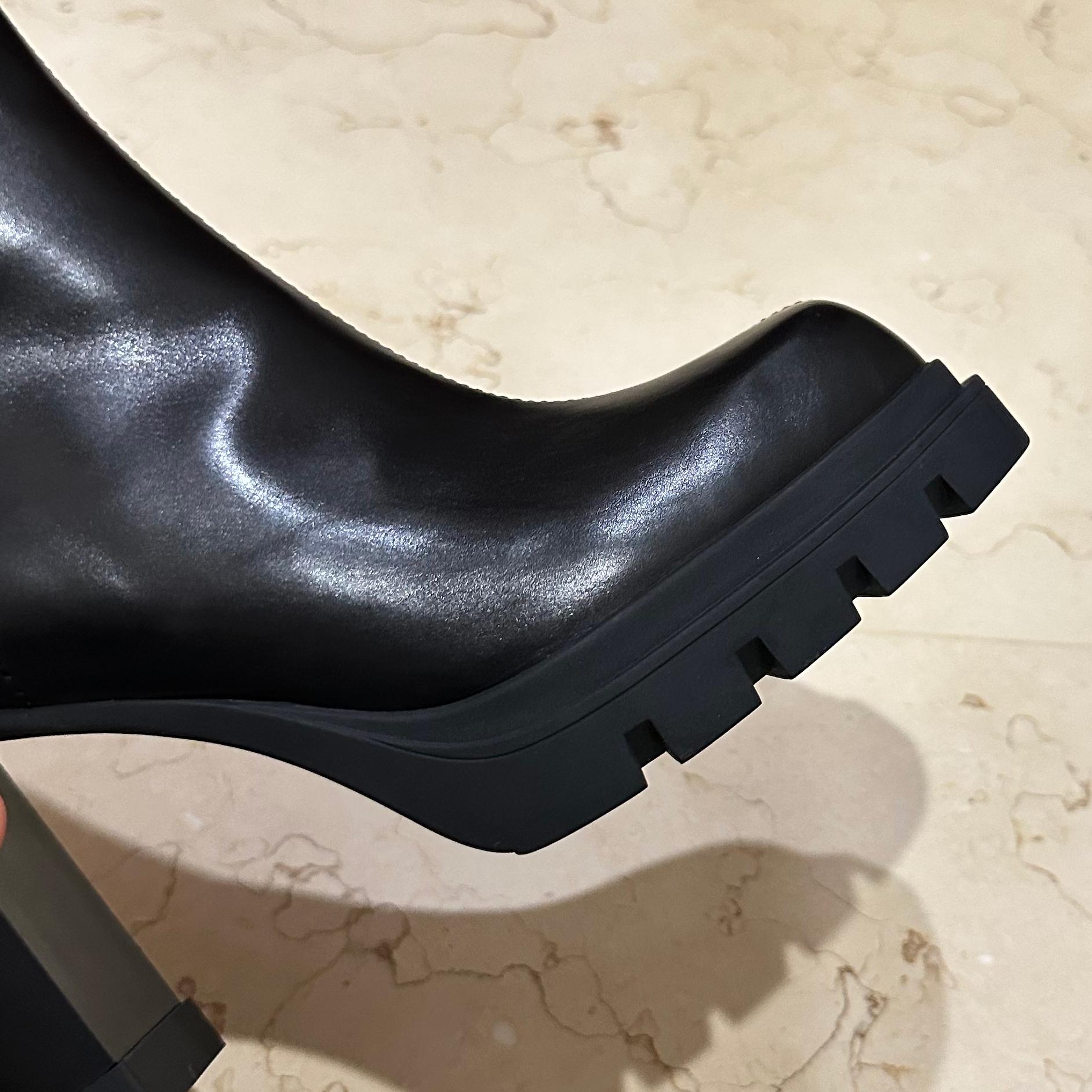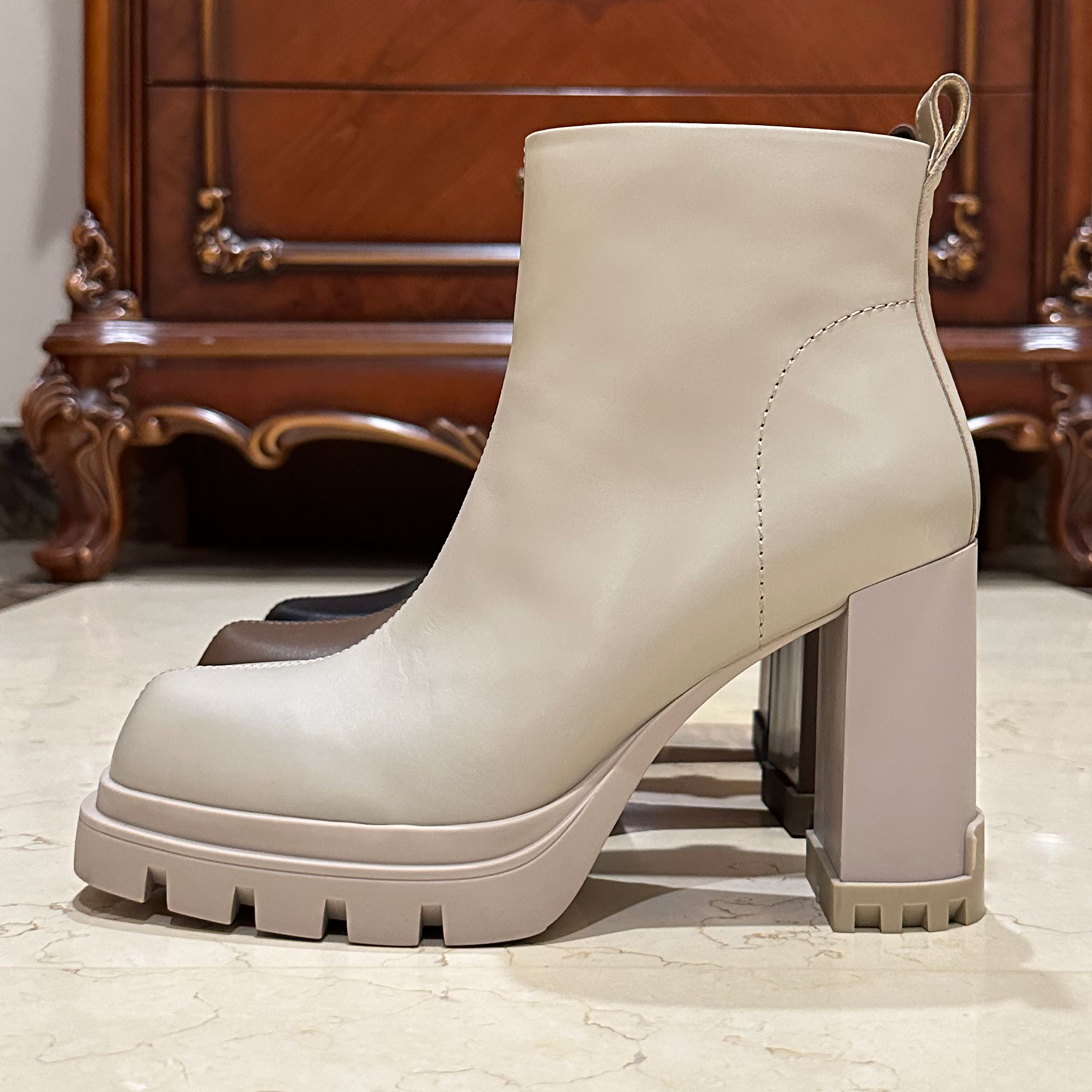 欧洲站24秋新款女鞋方头防水台粗跟增高显瘦胎牛真皮百搭高跟短靴