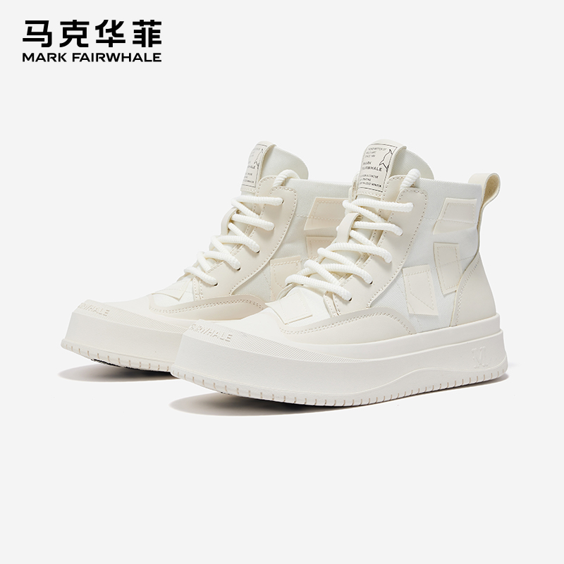 马克华菲高帮男鞋潮流板鞋男款2025新款秋季透气帆布鞋休闲白鞋男