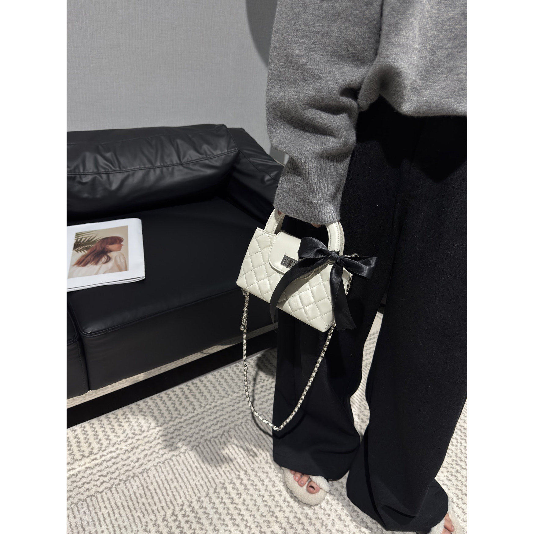 真皮小香风菱格小包包女精致手拎小包日常百搭小方包单肩斜挎包包