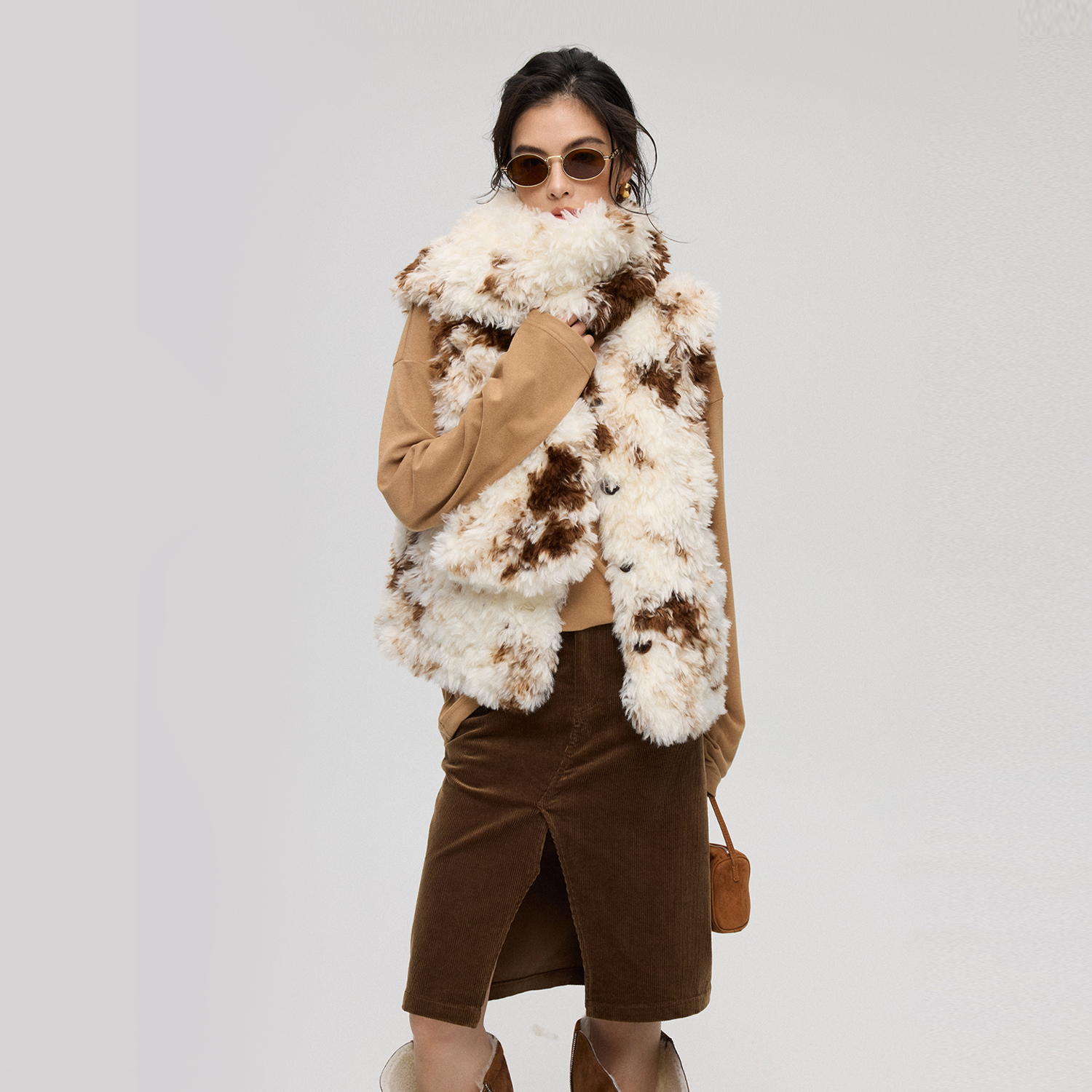 ZzZHANG|Du家挚献_秋冬混色印染环保防皮草摩登廓形马甲女+围巾