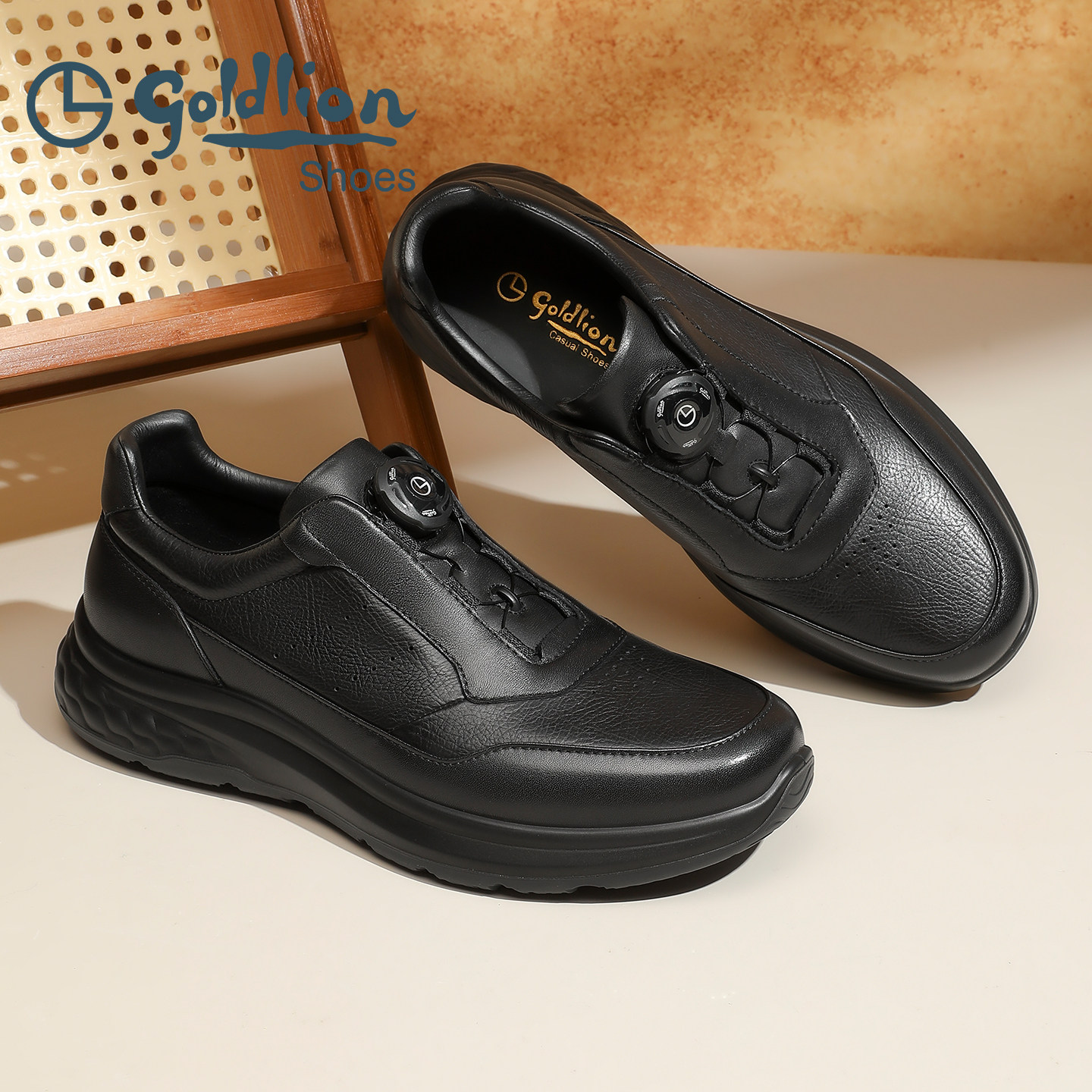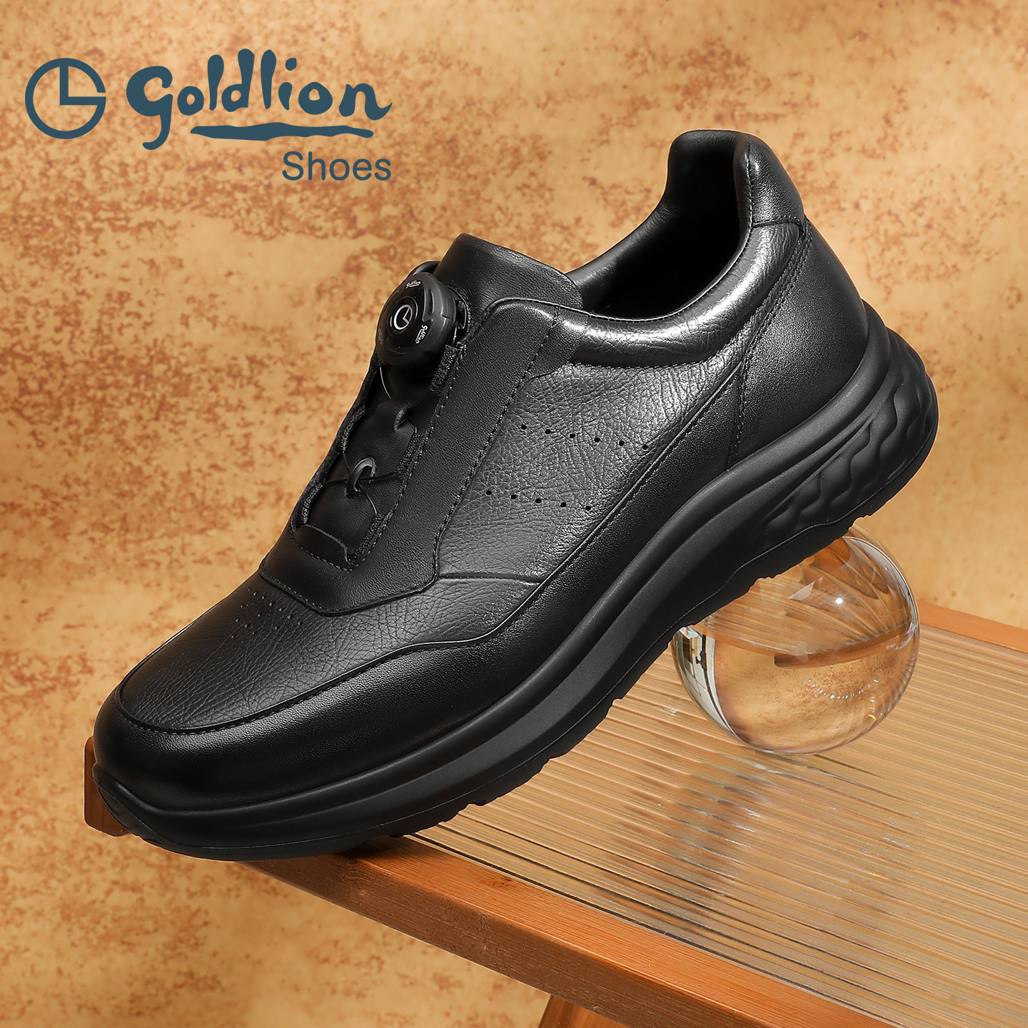 金利来男鞋2025年秋季新款厚底休闲皮鞋舒适百搭黑色真皮透气男鞋