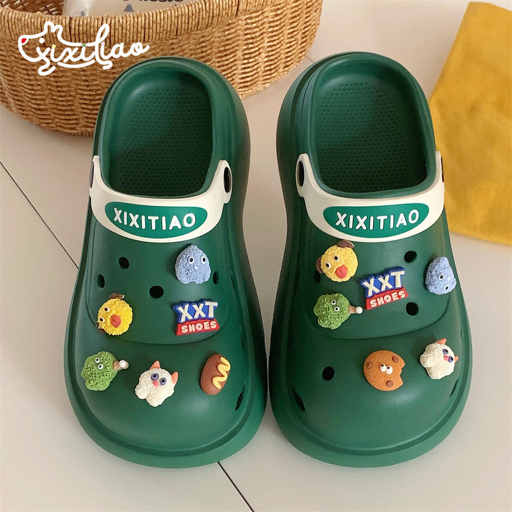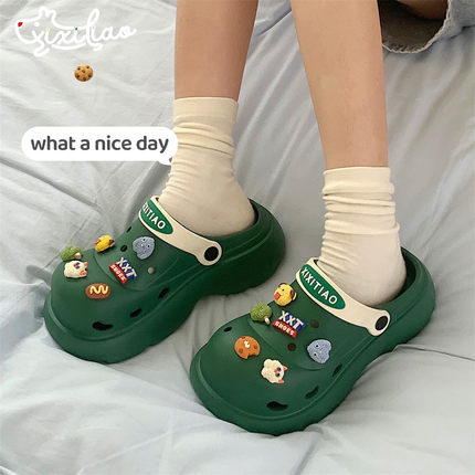 细细条2024夏季趣味卡通小怪兽洞洞鞋女新款防滑百搭厚底凉拖鞋