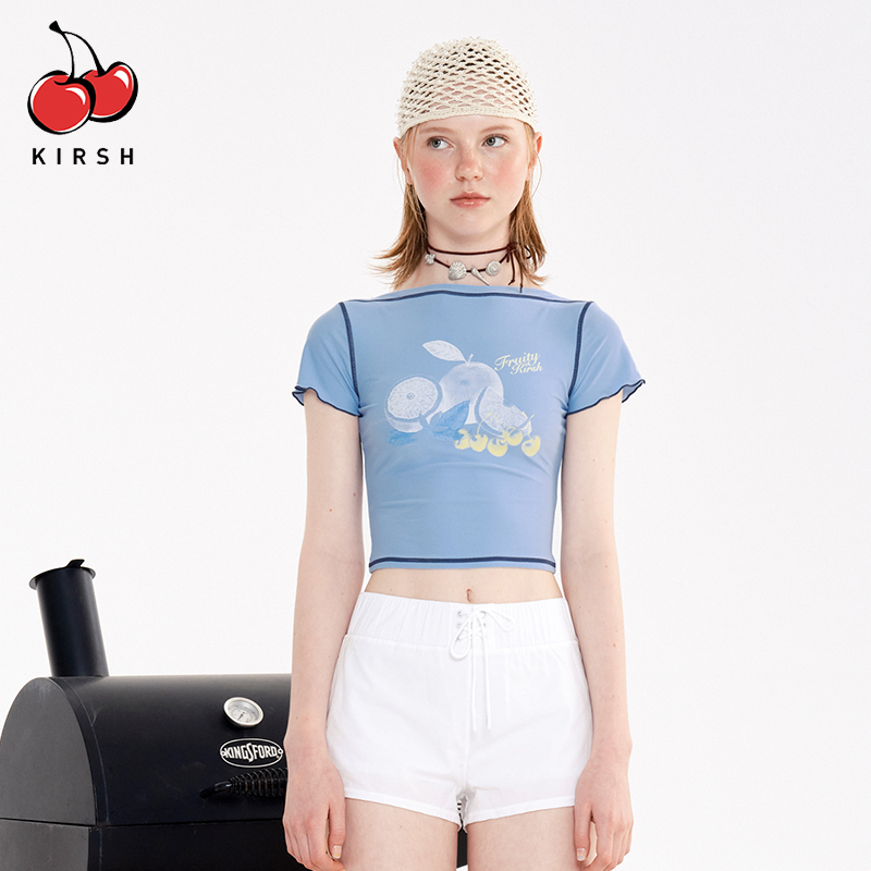 KIRSH大樱桃夏季新款女短袖T恤显瘦修身短款上衣露脐高腰