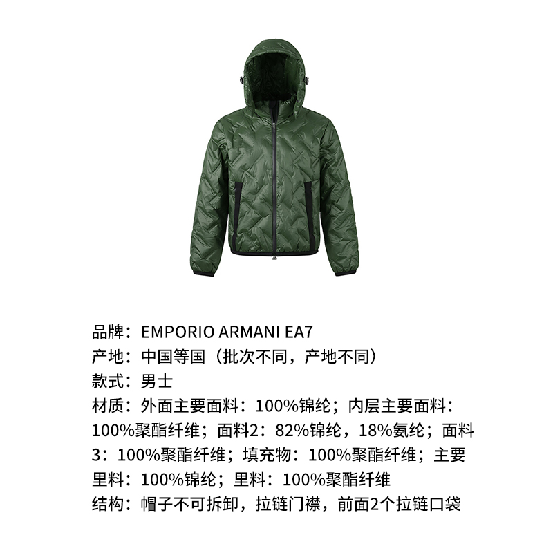 阿玛尼EA7男士连帽运动棉服夹棉夹克上衣外套 6RPB64 PN8MZ