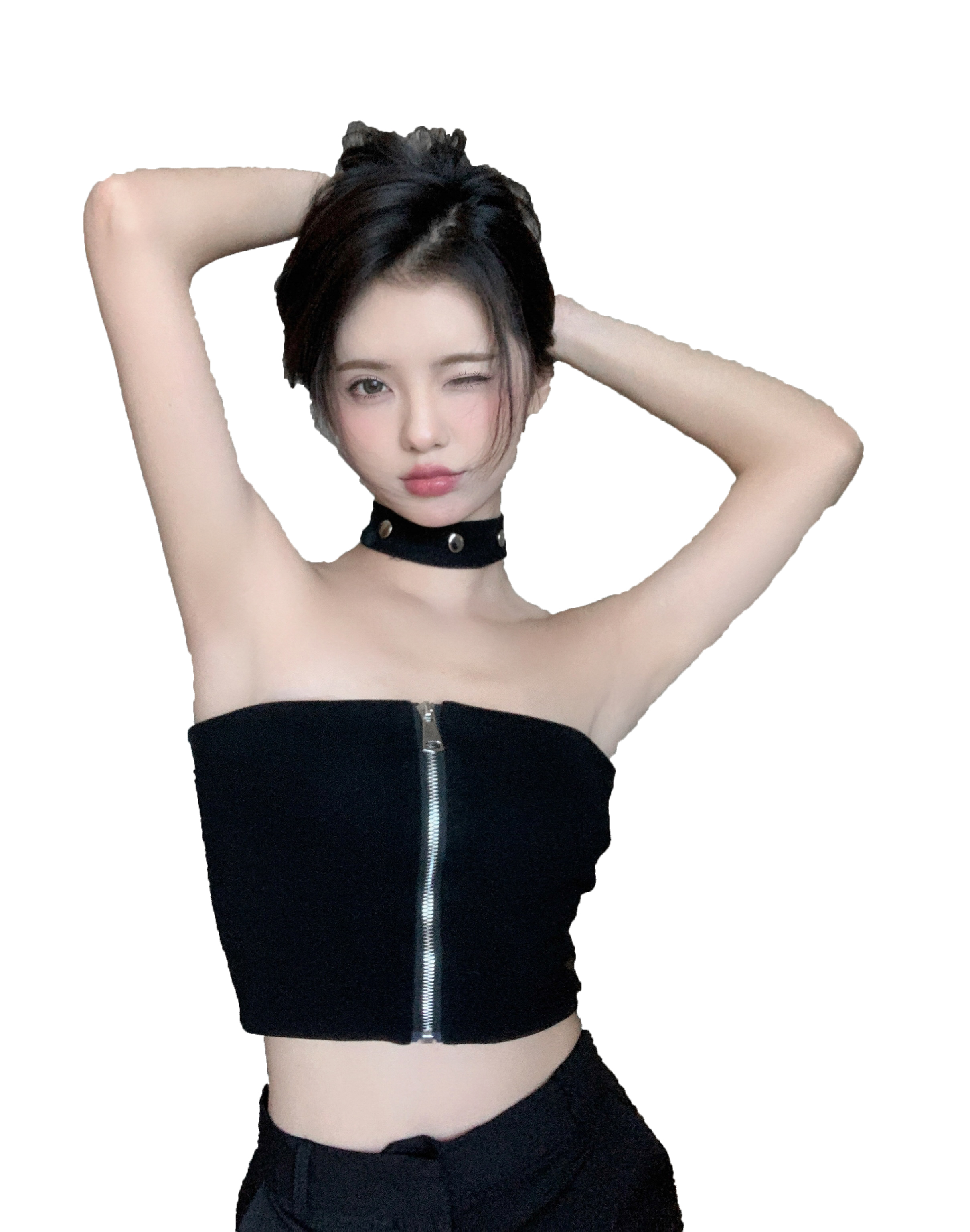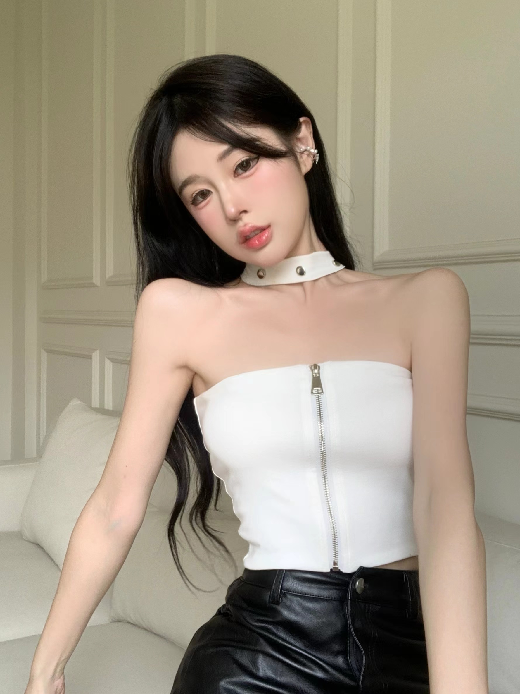 泫雅性感甜辣小心机挂脖一字肩无袖抹胸式针织背心女短款内搭上衣
