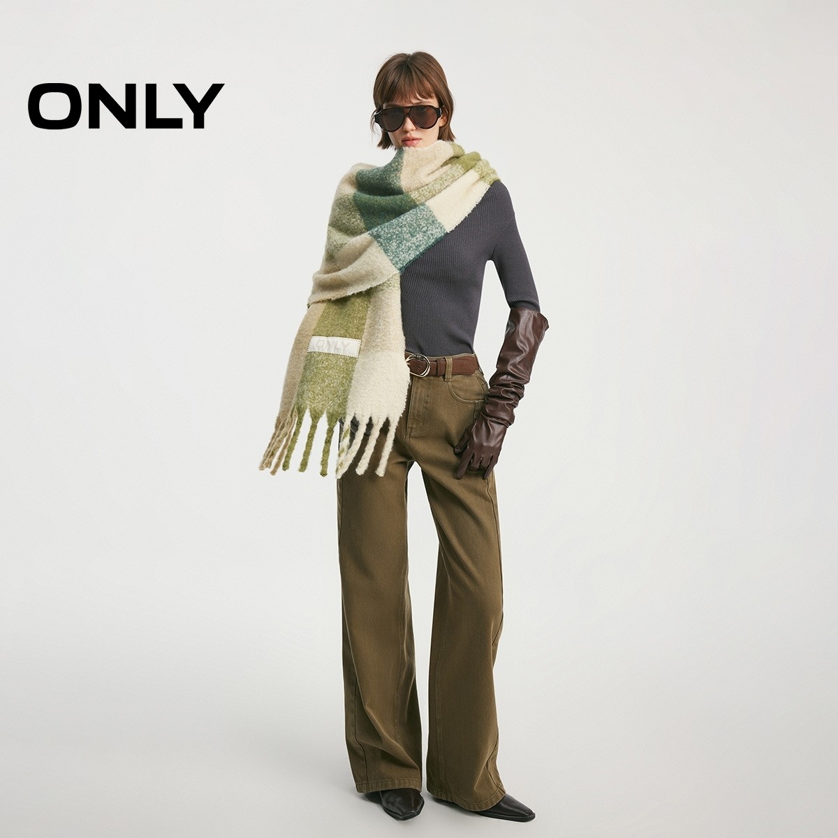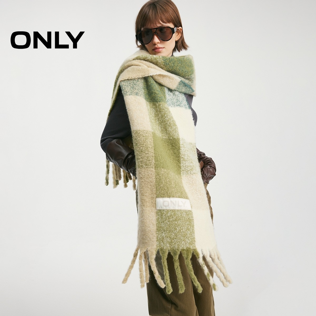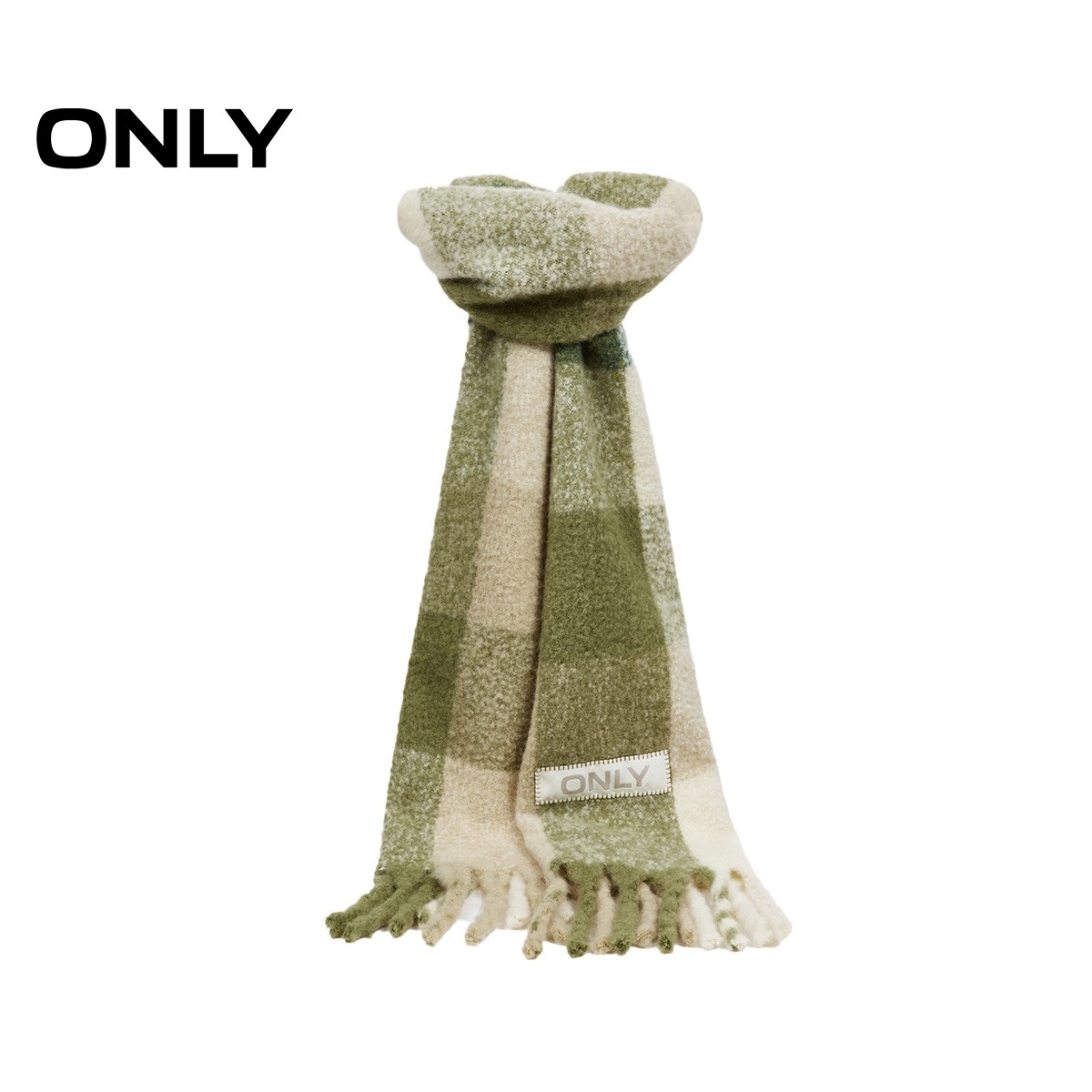 ONLY2026春季新款毛绒柔软亲肤彩色格纹拼接灵动流苏织标围巾女