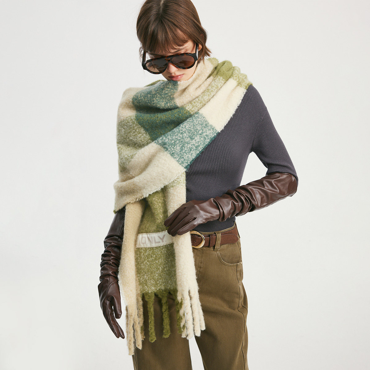ONLY毛绒柔软亲肤彩色格纹围巾