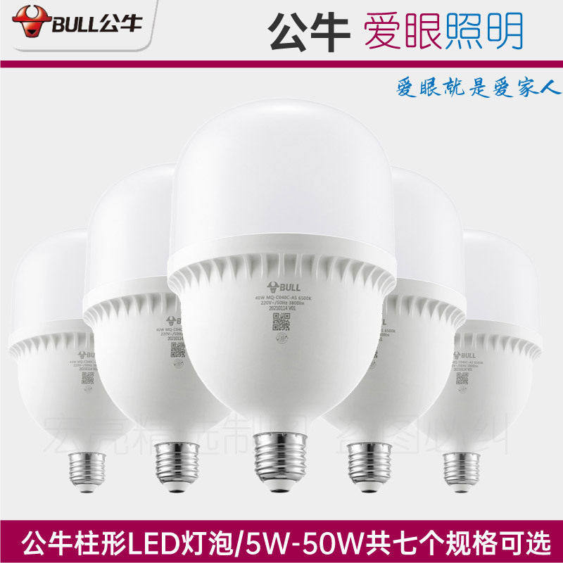 公牛灯泡led大功率亮度节能省电防水防尘防蚊虫家用商用柱形灯